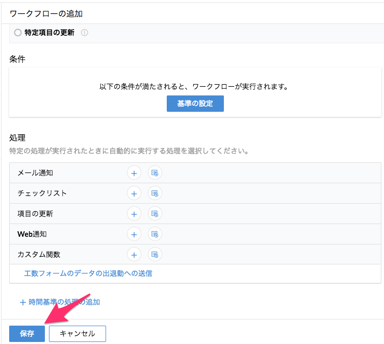 表示された画面で「ワークフローの追加」というボタンをクリックしてください。