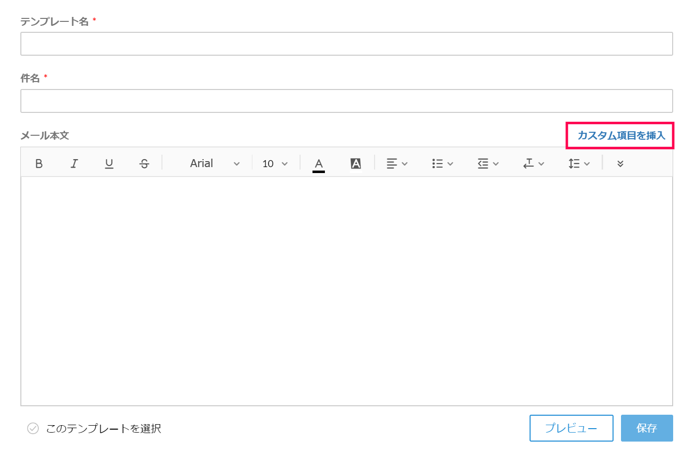 ※カスタム項目は右上「カスタム項目を挿入」から挿入していただけます。