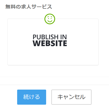・「求人サービスとWebサイト」または「Webサイトのみ」を選択するウィンドウが開きますので「Webサイトのみ」を選択し、「続ける」をクリックしてください