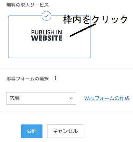 ・枠が✔状態になりましたら、該当の求人向け応募フォームを選択または作成し、 「公開」をクリックしてください