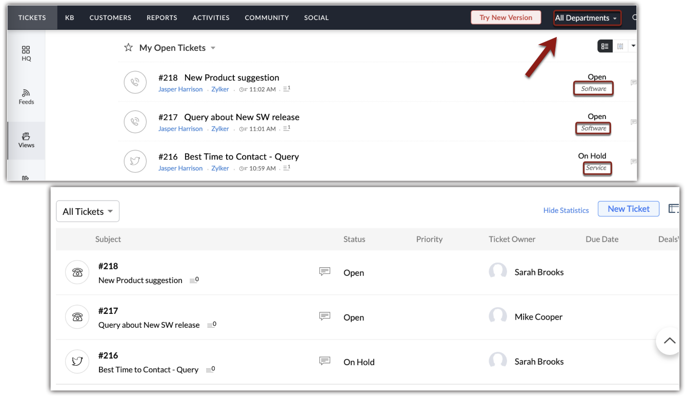 例えば、SteveがDeskのソフトウェア部門にのみ所属している場合でも、サービス部門の顧客が作成した問い合わせもデータの関連リストに表示されていました。
