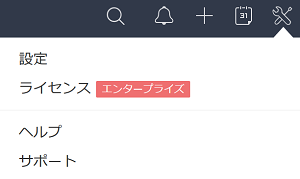 画面右上の設定ボタンから「ライセンス」をクリックします。