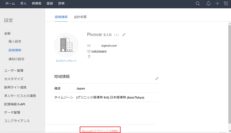 ・画面下部の「Recruitのアカウントの削除」をクリックしてください