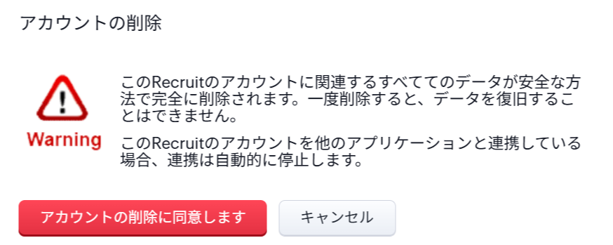 Recruitのアカウントの削除