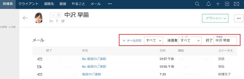 - 候補者/連絡先詳細ページのメール欄で、共有されたメールの履歴を表示させることができるようになります