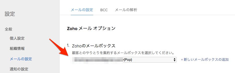- Zoho メールオプション「1.Zohoのメールボックス」の一覧に追加済みのPOP3アカウントが表示されます