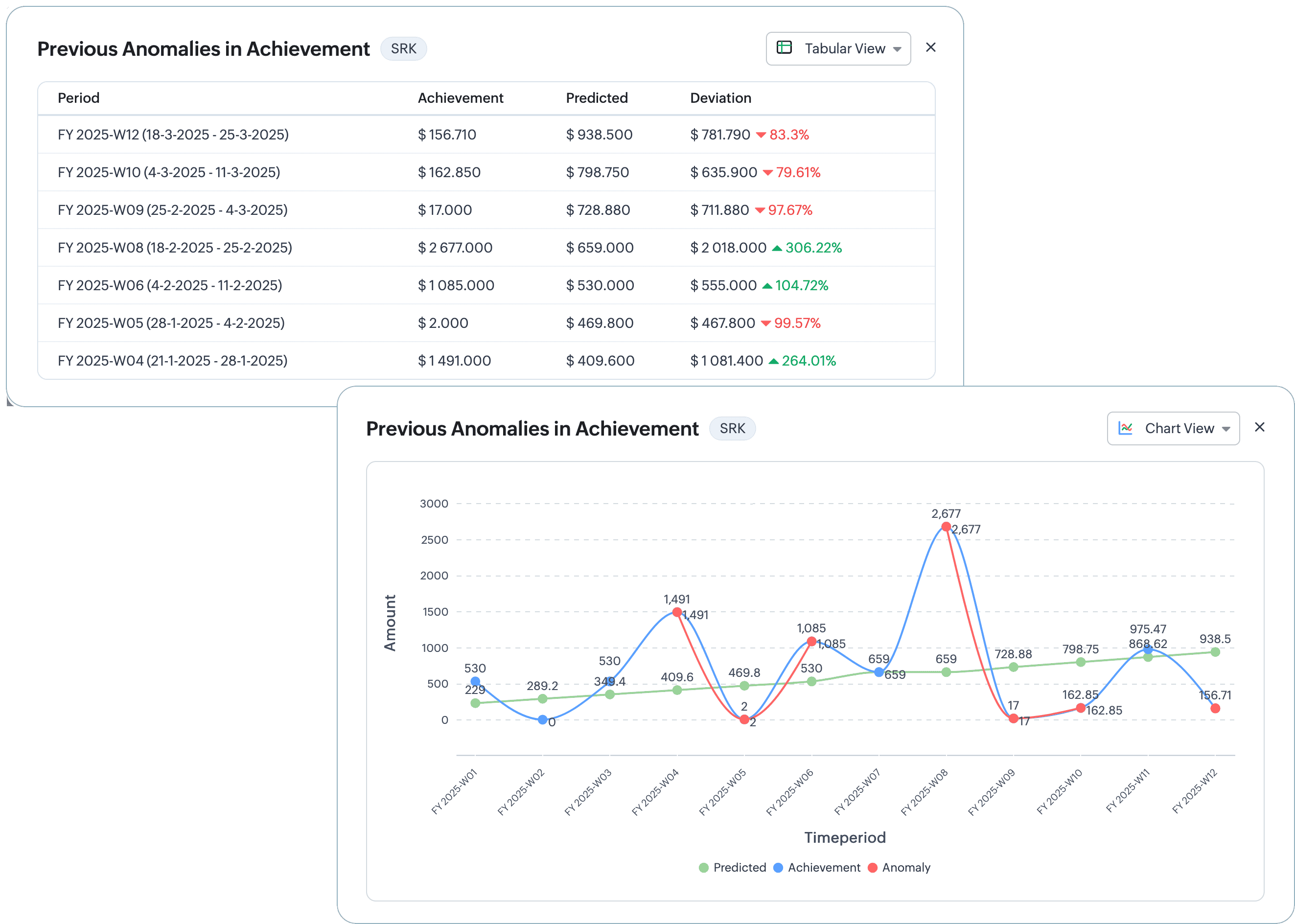 これらは、売上予測レポートのパフォーマンス管理に役立つ異常検知機能のほんの一例です。