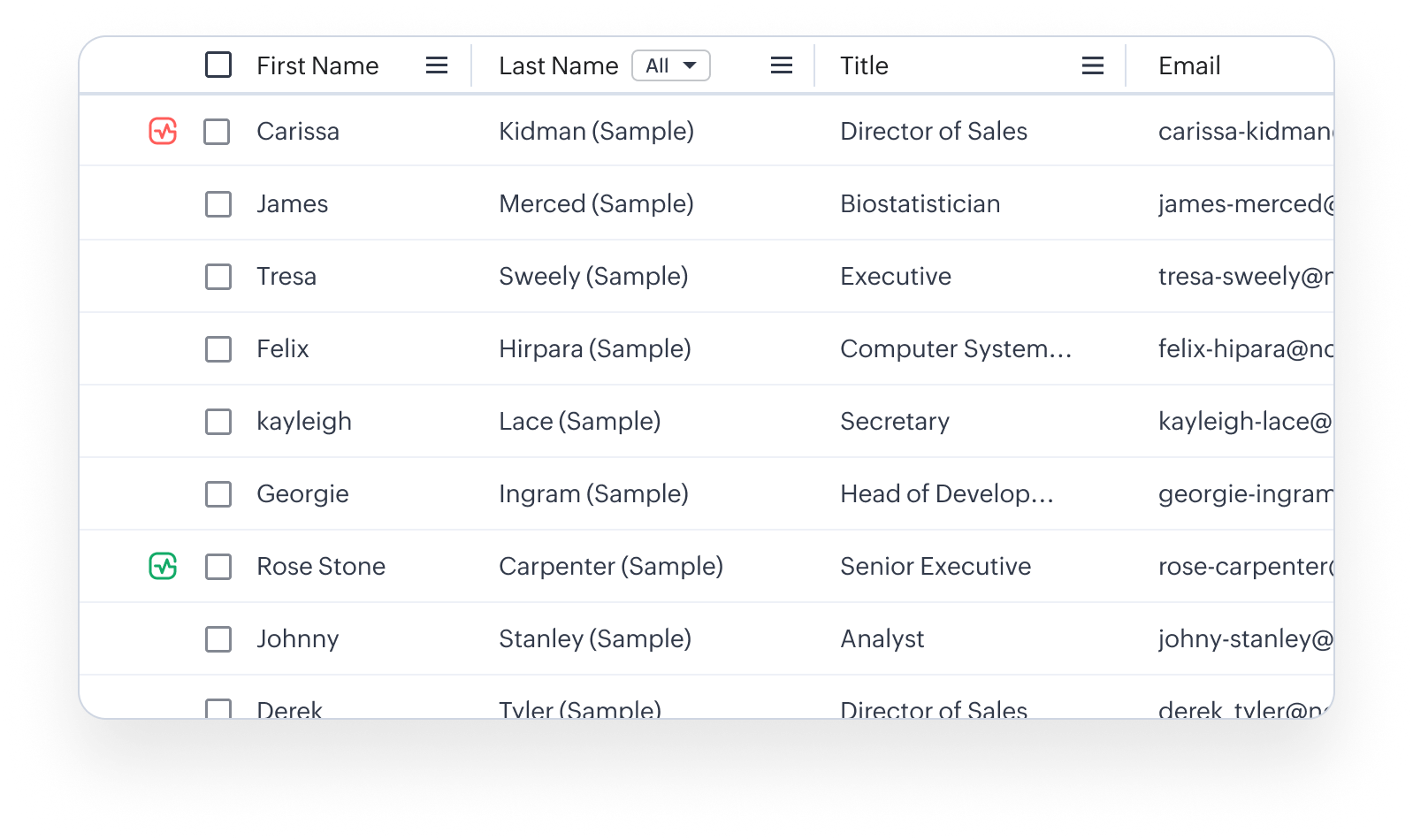 デフォルトで用意されている「不達のレポート」にて、不達になったメールの詳細を確認できます。 必要に応じて、表示項目のカスタマイズや列グループの作成、フィルターの設定などを行うことが可能です。