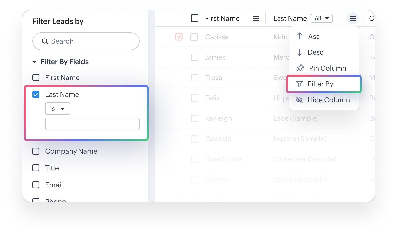 現在、一覧表示のすべての項目列には、表示項目に基づいてデータをフィルタリングするプロセスを簡素化するために、「フィルター基準」オプションが含まれています。