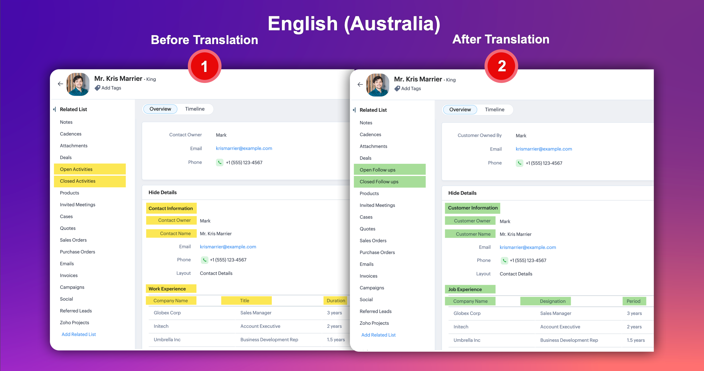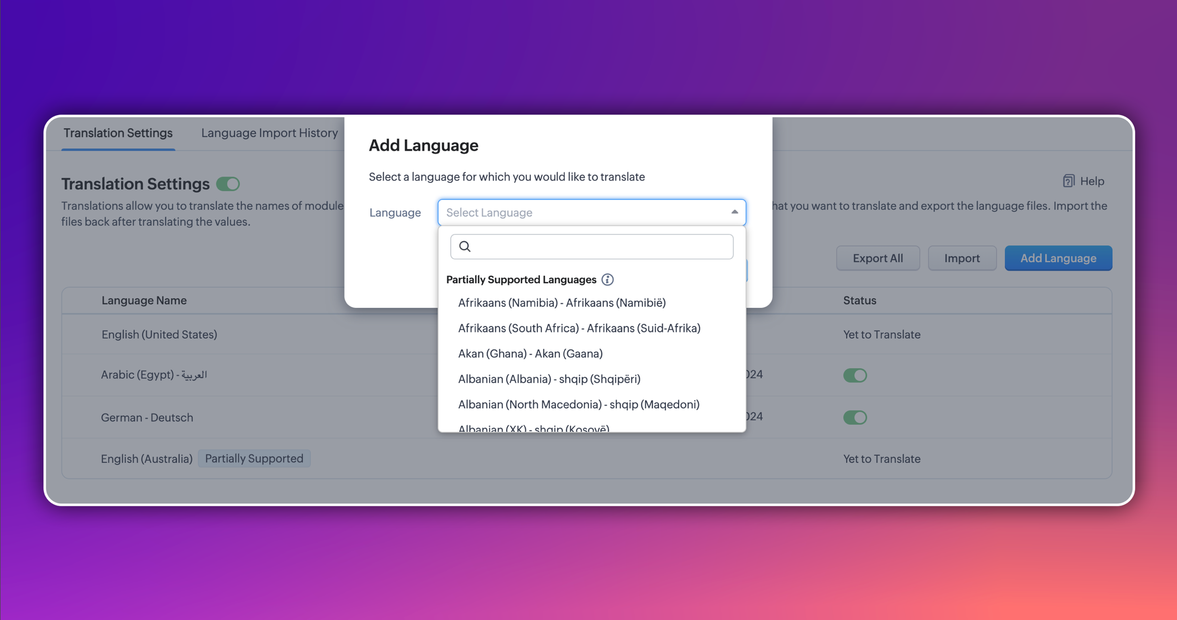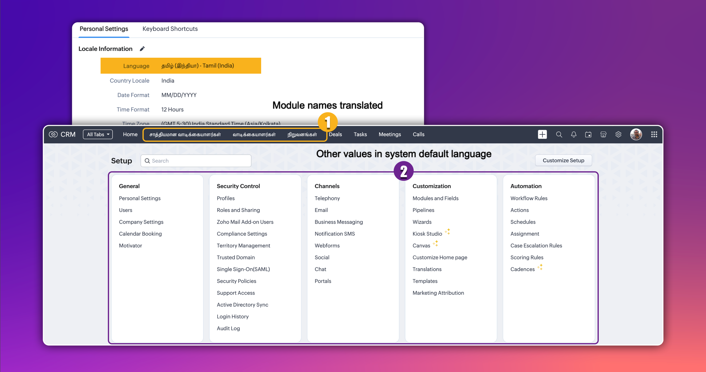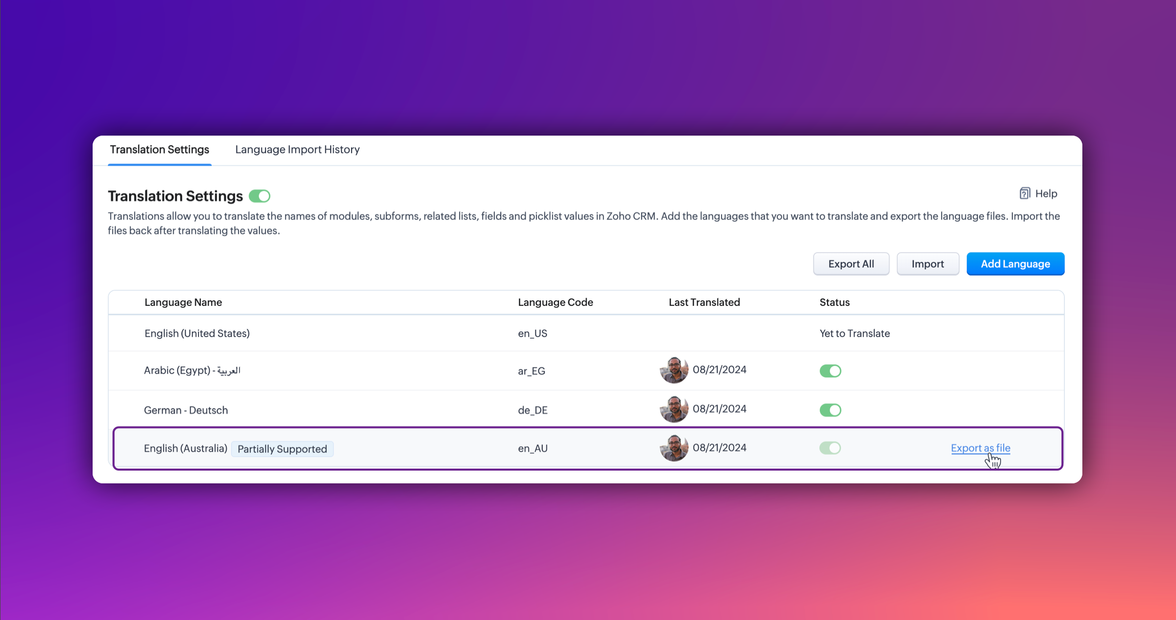 Zoho CRMは、多様な地域のすべてのユーザーが効率的に利用できるよう、翻訳機能を強化し、より多くの言語に対応できるようになりました。