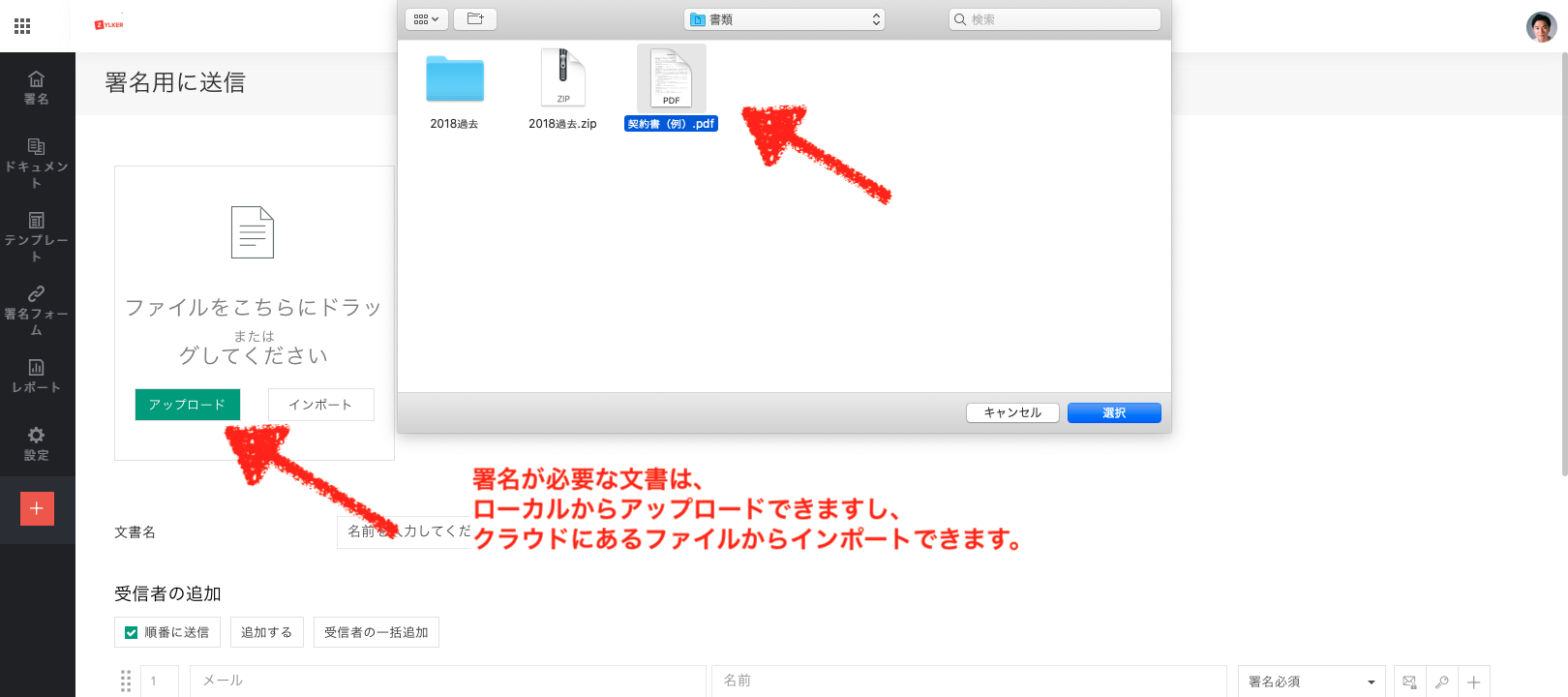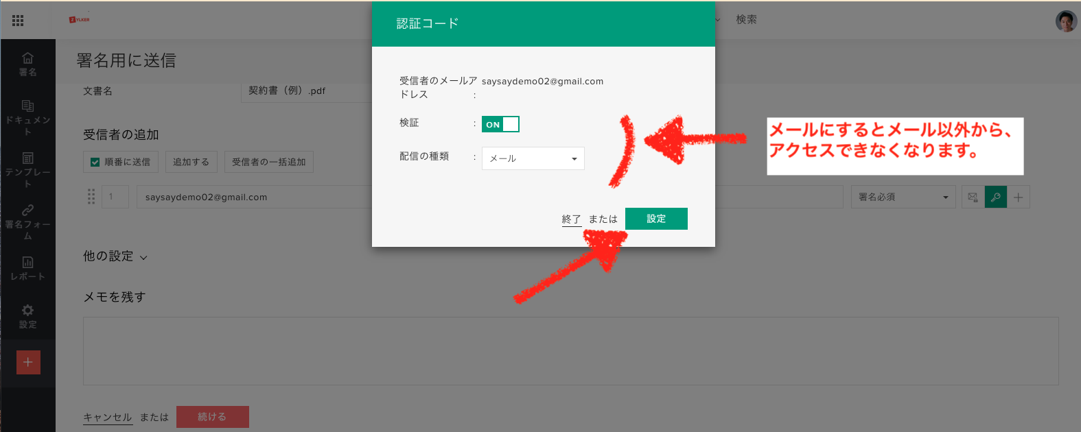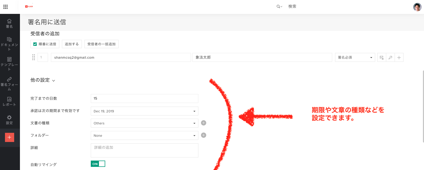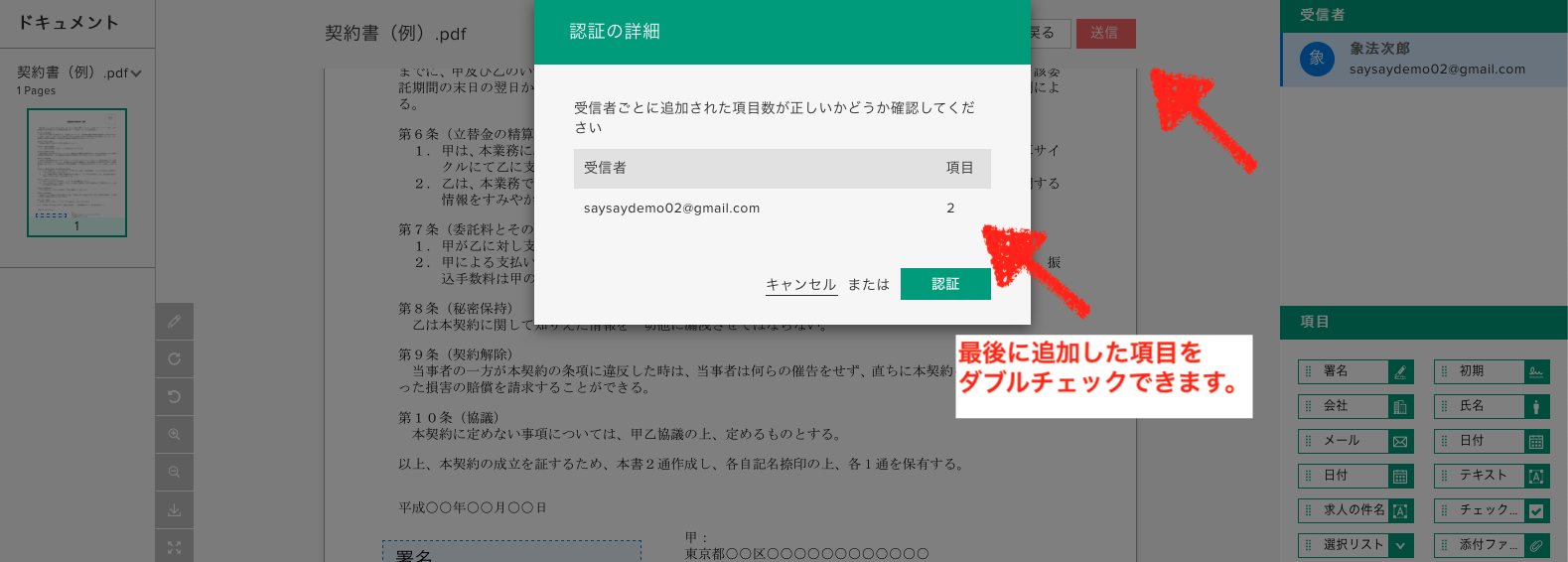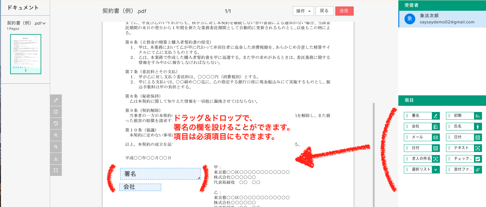 署名文書の内容の編集と送信