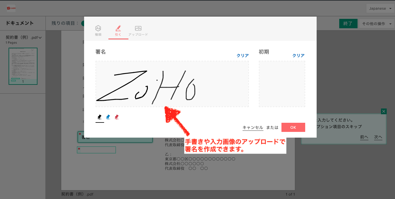 受注書や契約書などのビジネス文書にサッと署名が可能です。