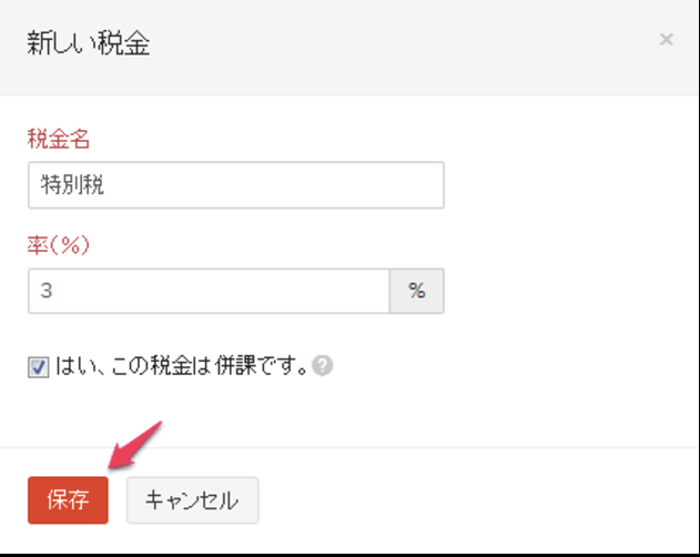 「はい、この税金は併課です。」のチェックボックスをクリックしてチェックを入れます。