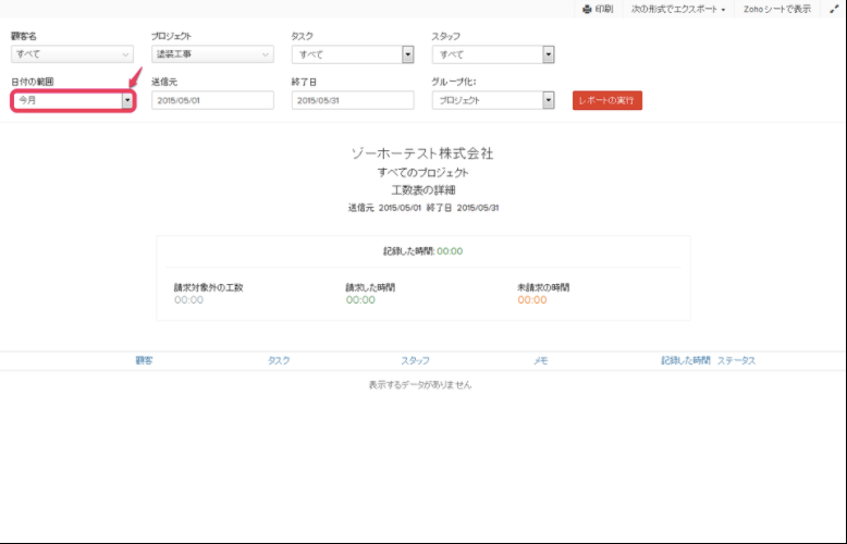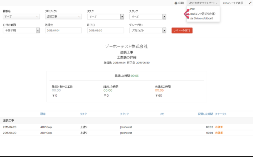 【Zoho Invoice】工数表の詳細のレポートを作成する