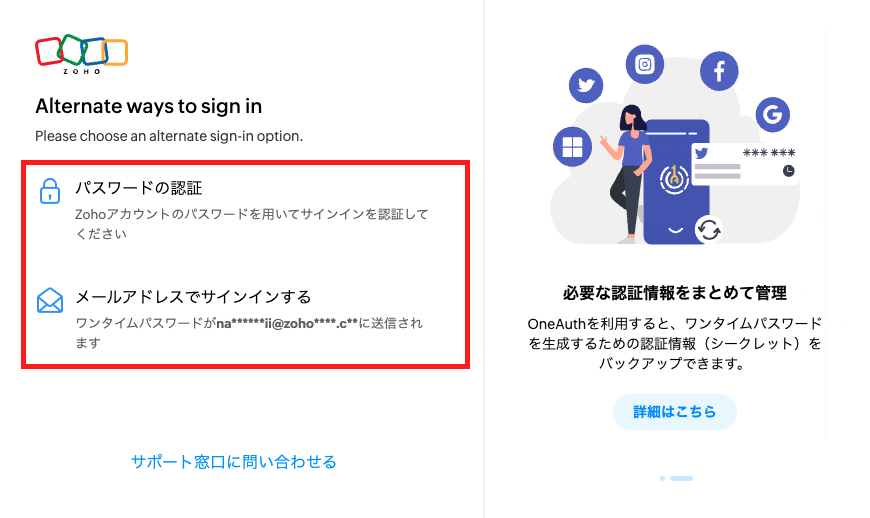 【Zoho Accounts】二段階認証/多要素認証を有効にしているアカウント向け:バックアップ認証コードの取得/使用方法について