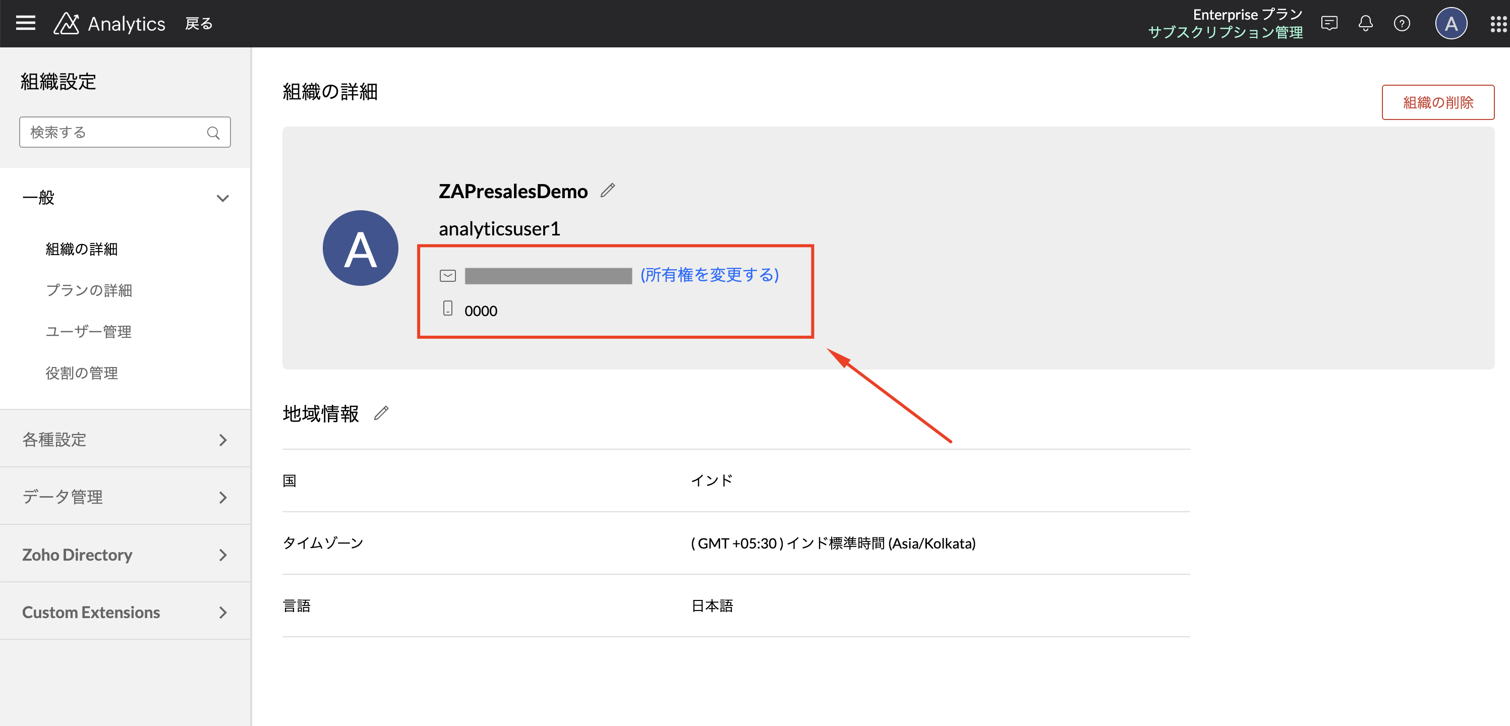- 特権管理者アカウントでZoho Analyticsにログインします