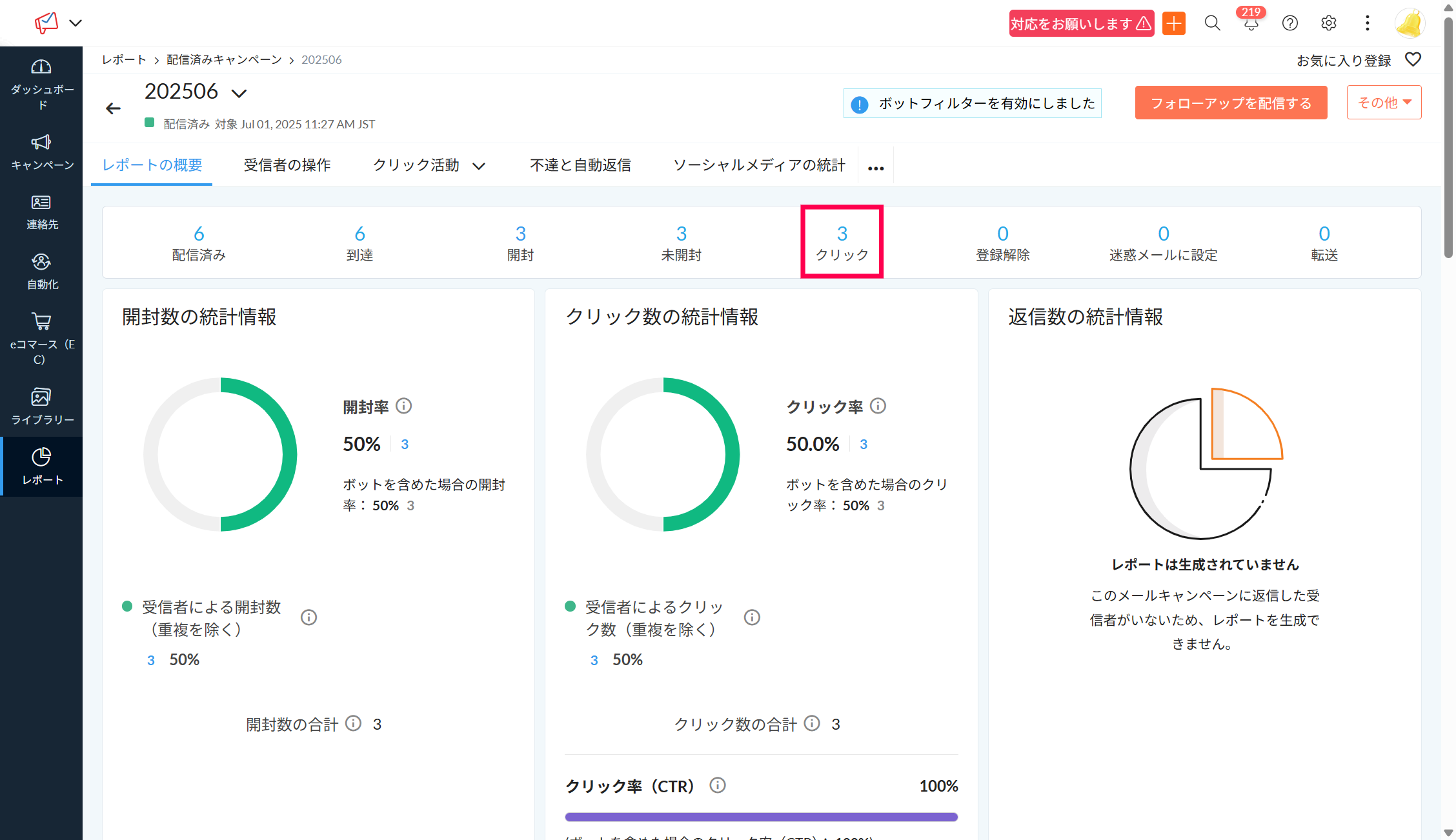 なお、クリックに関する情報は、「クリック活動」タブでも確認可能です。