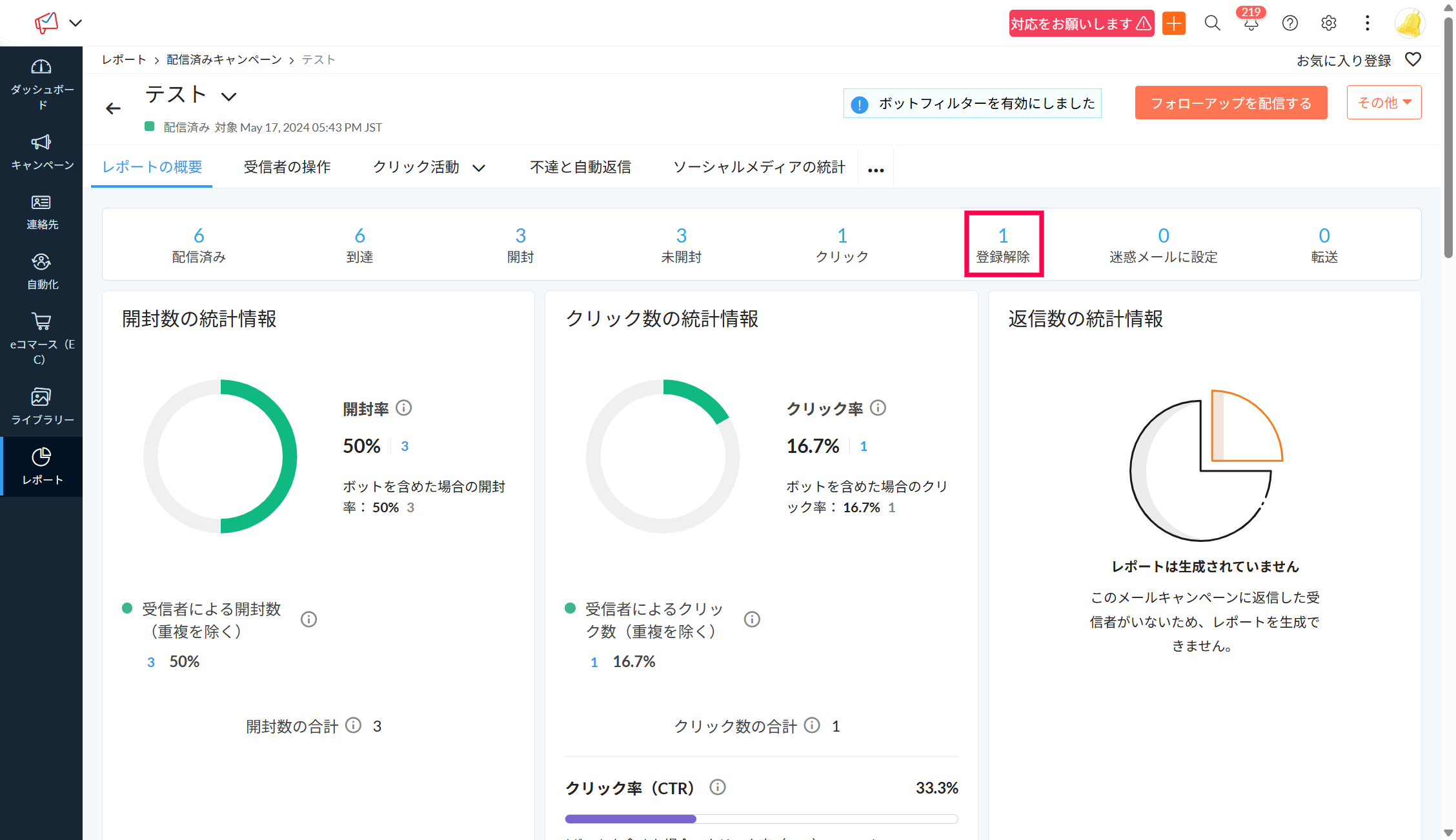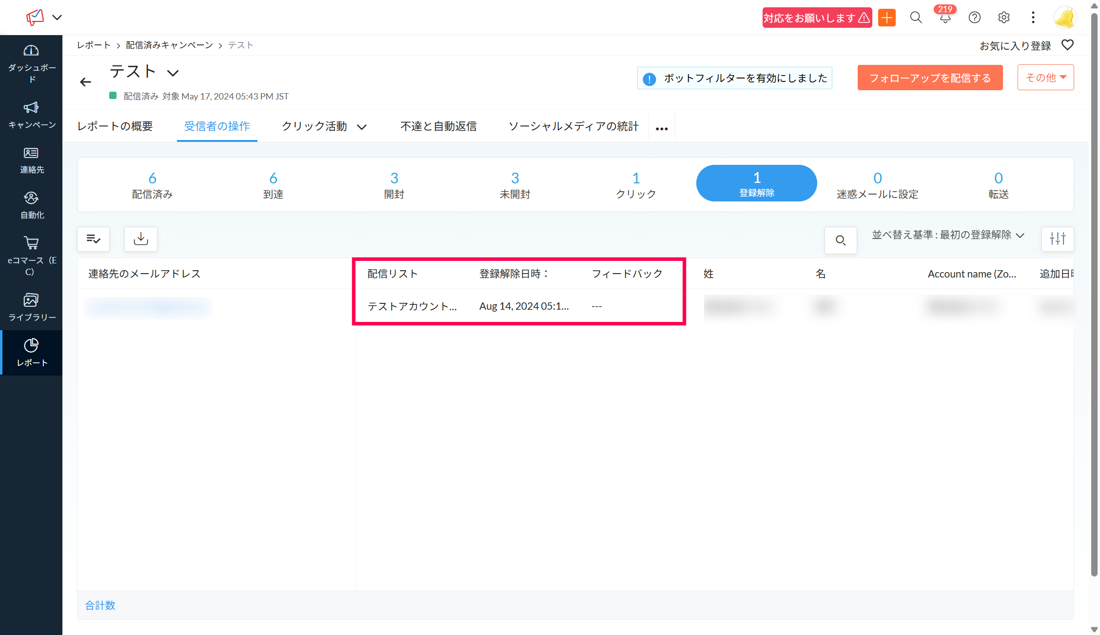【Zoho Campaigns】送信キャンペーンメールで登録解除した連絡先を確認する方法