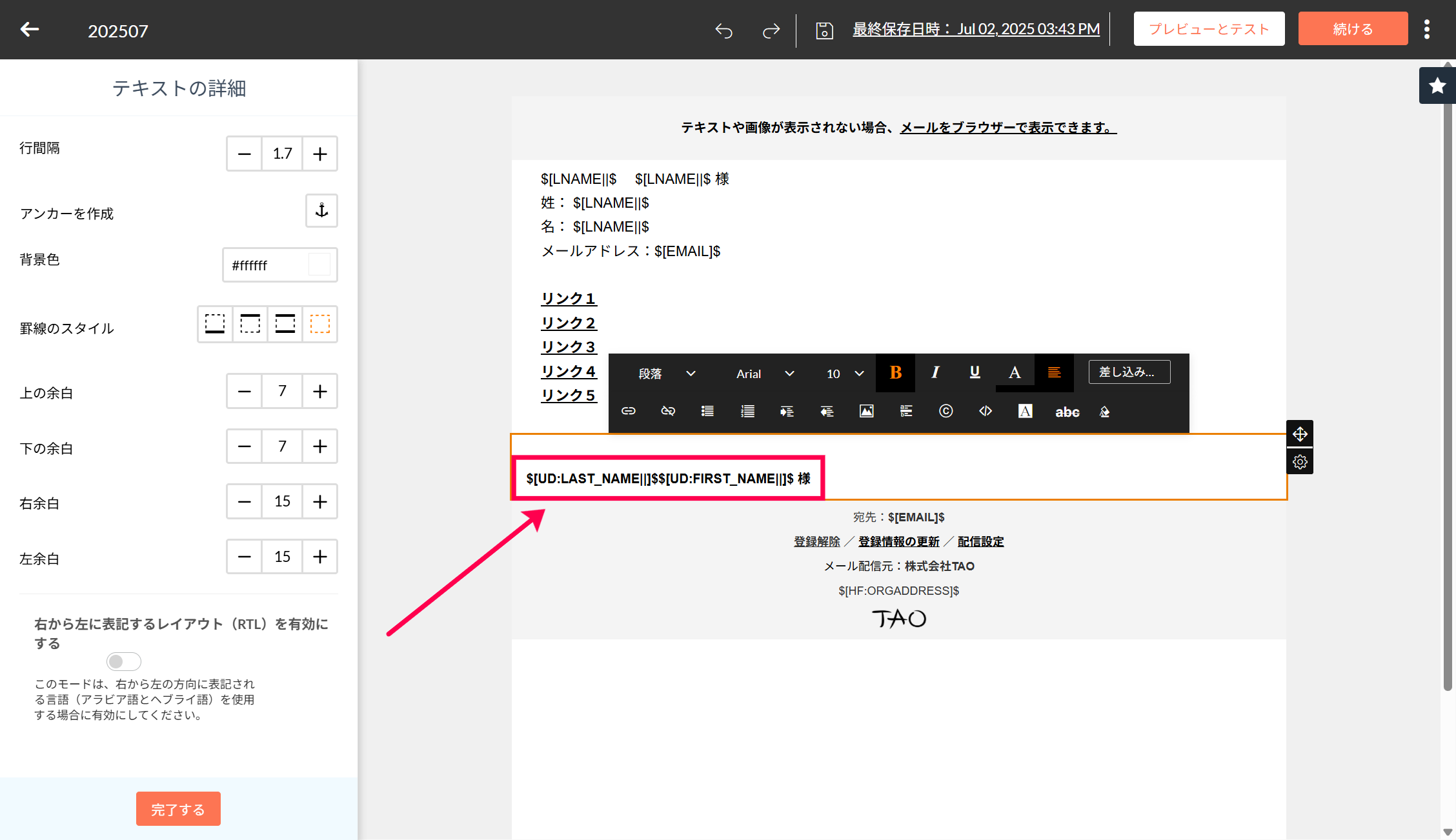 【Zoho Campaigns】メールの本文に差し込みタグを挿入する方法