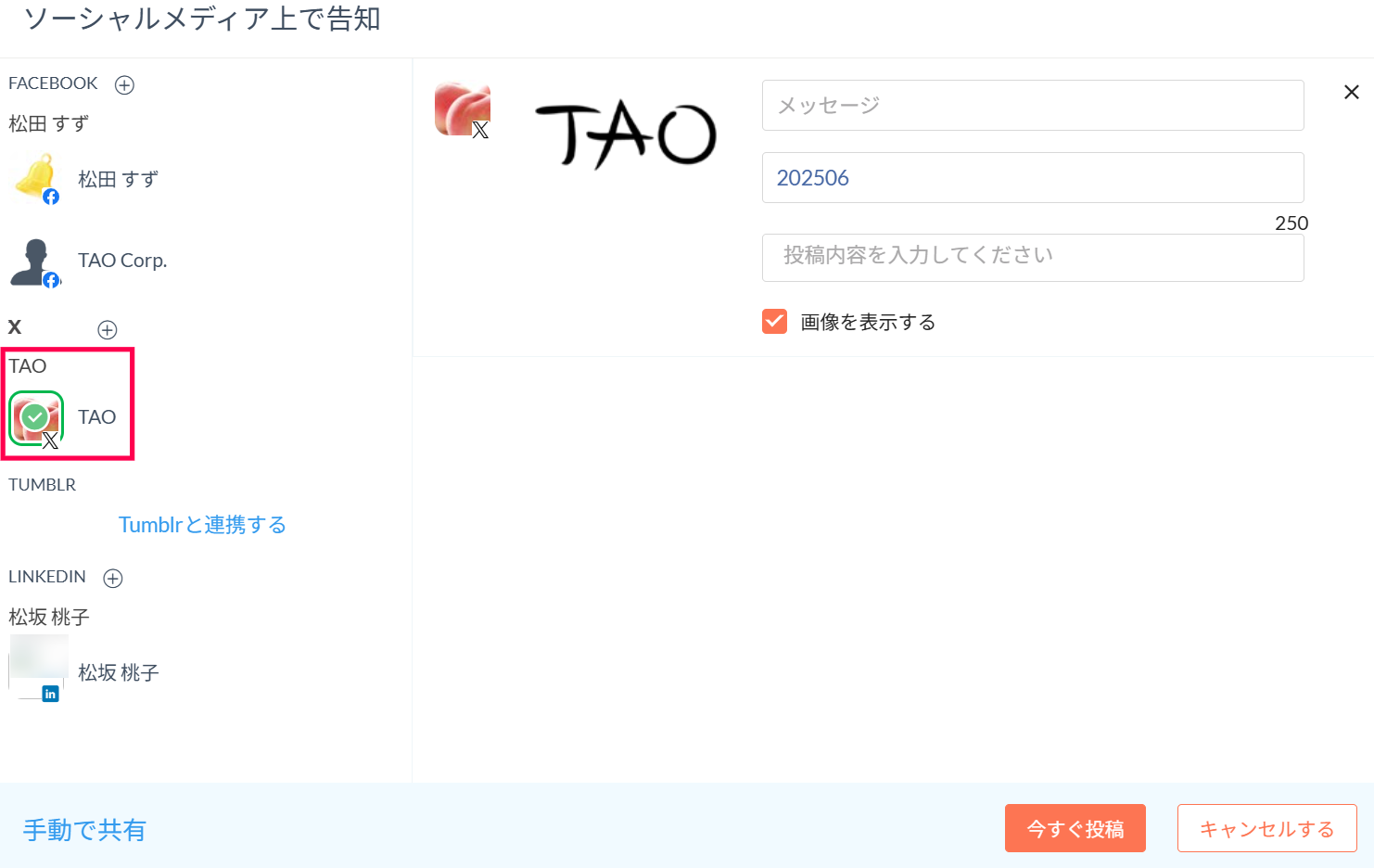 4)投稿内容を確認して、「今すぐ投稿」をクリックします。