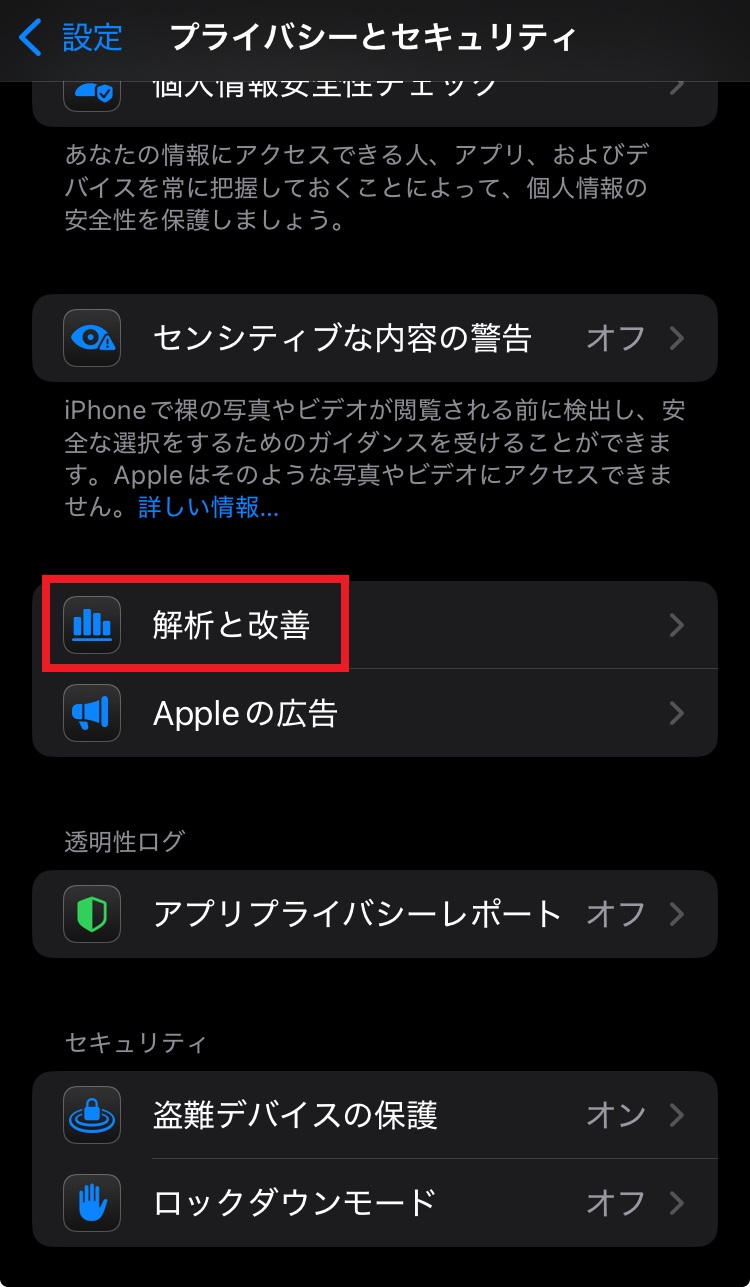 - 「設定」へ移動し、「プライバシーとセキュリティ」をタップします。