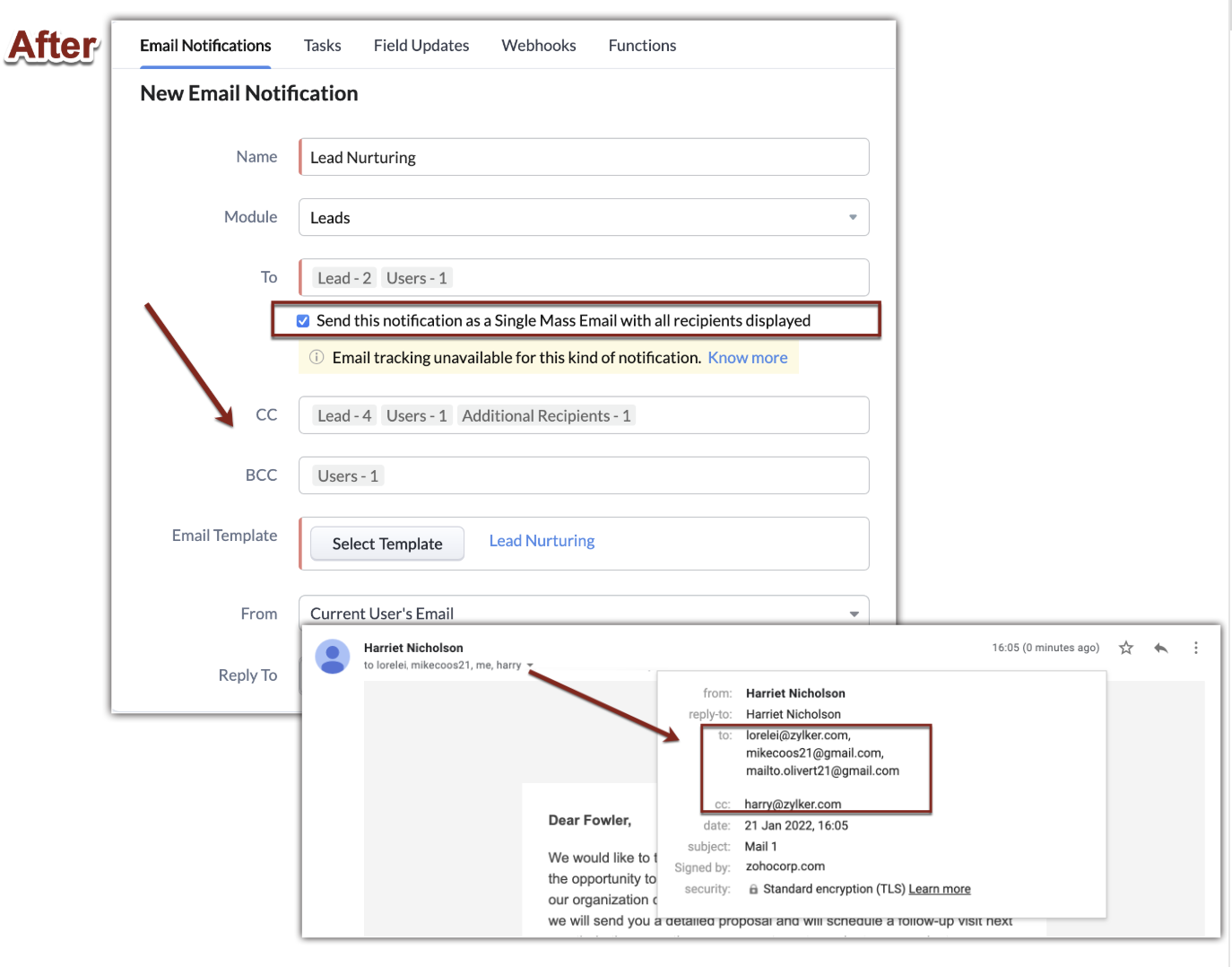 今回のアップデートにより、メール通知にすべての受信者のメールアドレスを表示し、メール送信数の消費を最適化するために、すべての受信者宛てに通知メールを一括で送信するオプションを提供しています。