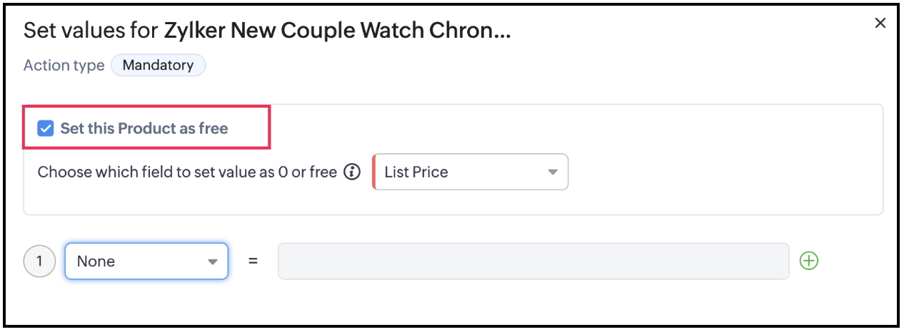 様々な時計を販売しているZylker Watches社を例に考えてみましょう。Zylker Watches社では、売上を伸ばすために、面白い販促手法を導入しています。例えば、Zylker Heritage壁掛け時計を購入すると、カップル時計が1つ無料でついてくる、などです。