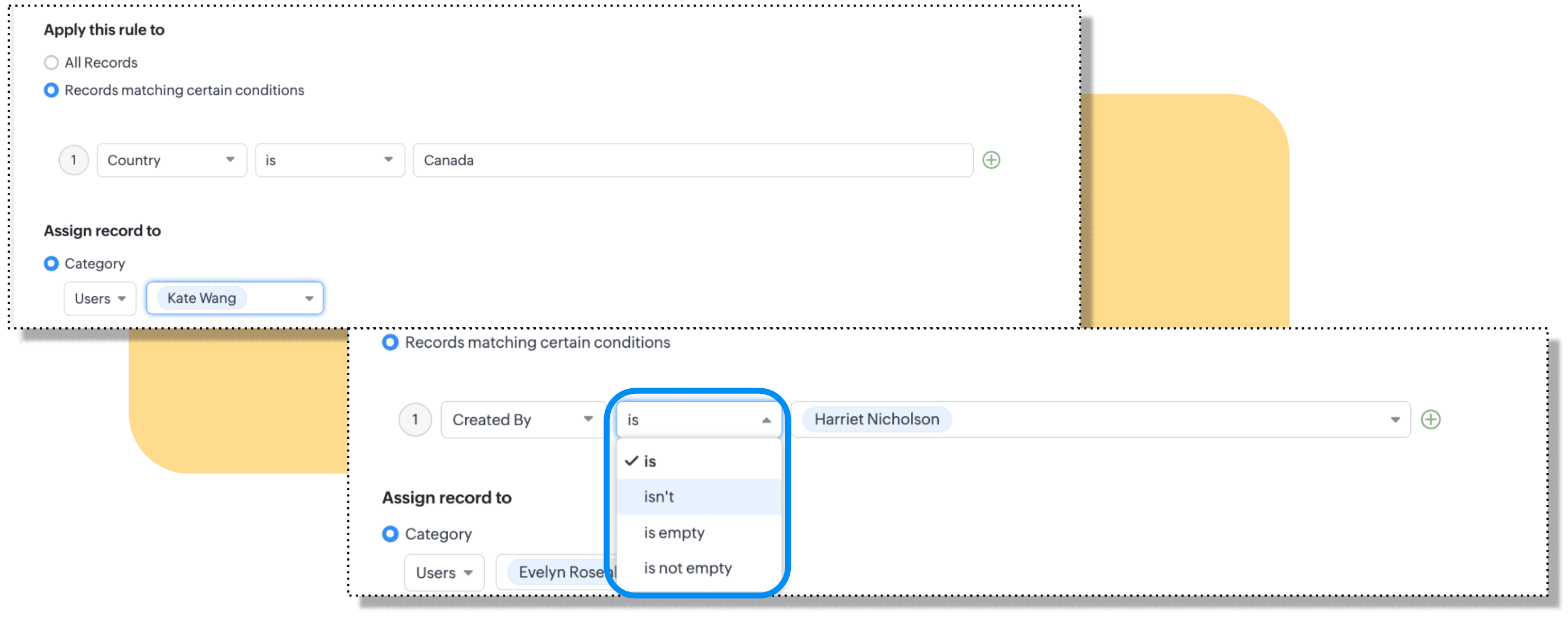 割り当てルール機能では、設定権限を持つユーザーが割り当てルールを設定するとき、