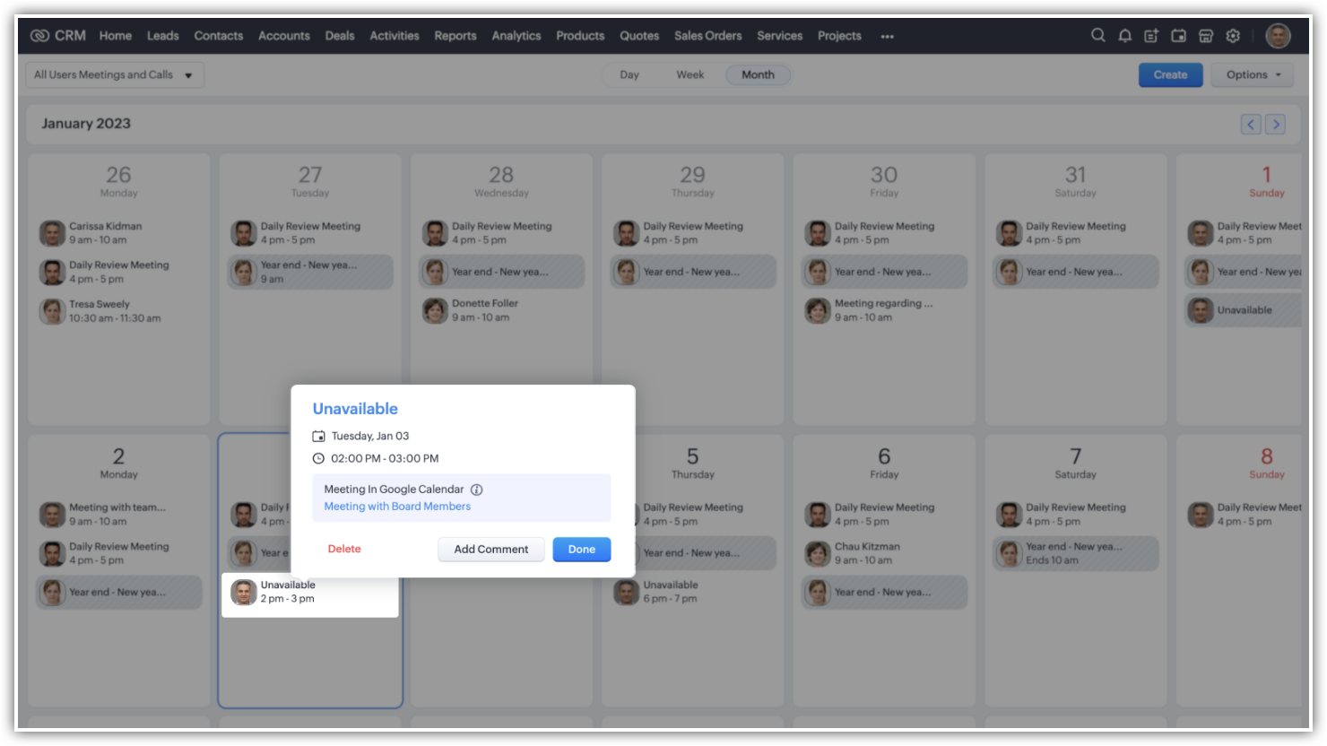 Googleカレンダーに予定されている任意の予定に基づいて、Zoho CRMカレンダーを自動的に「予定あり」として設定することができるようになりました。