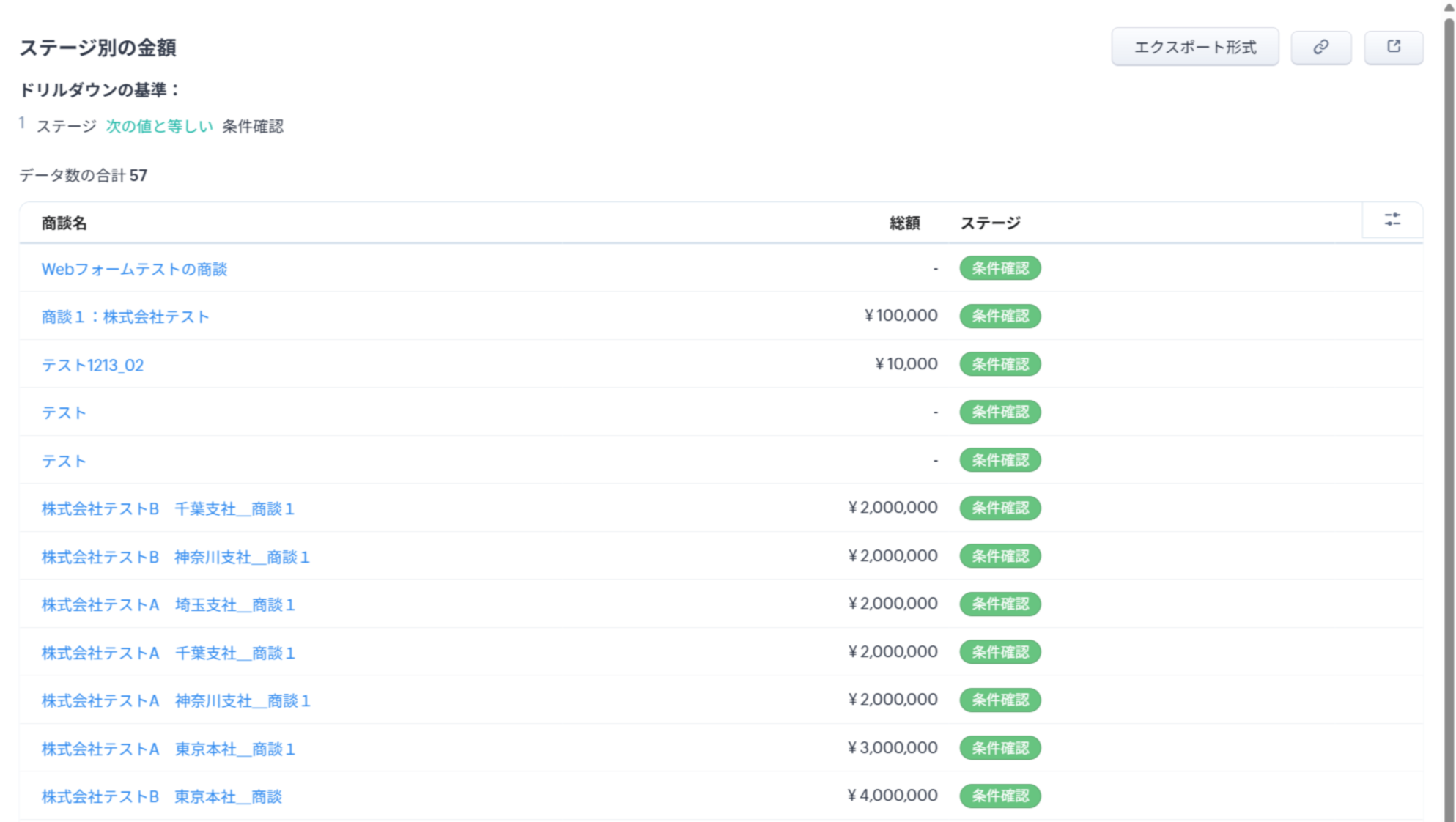 ダッシュボードの各グラフをクリックすると該当するデータの一覧画面が表示されます。