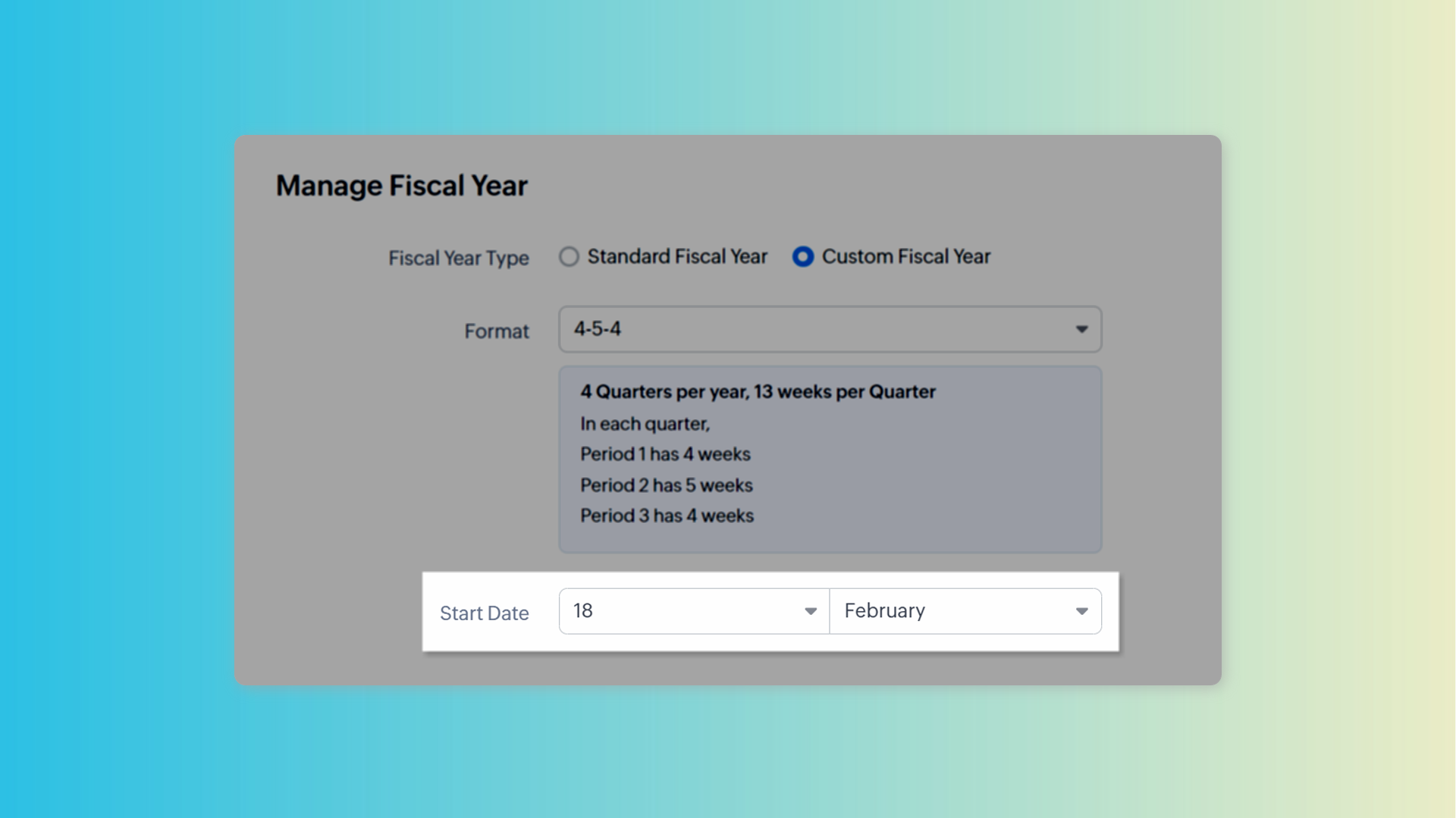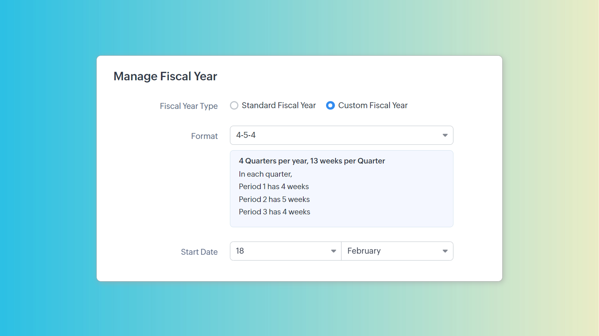 CRMの会計年度を、4-5-4週の期間構成やその他の広く使用されている52週の会計年度の形式に従うように設定できるようになりました。