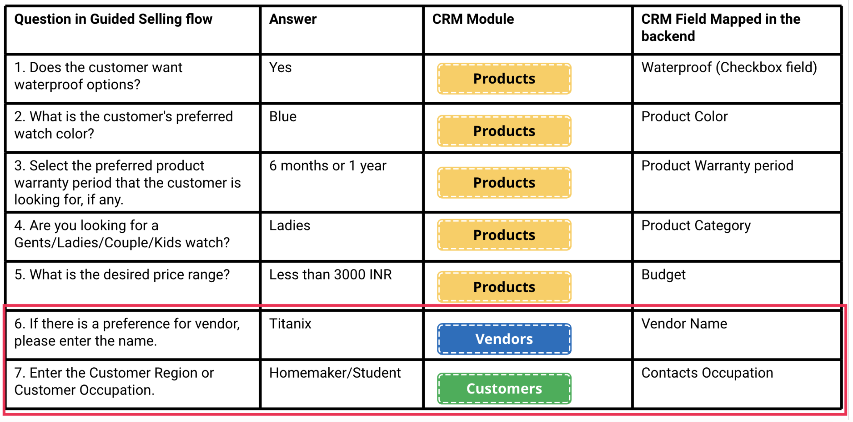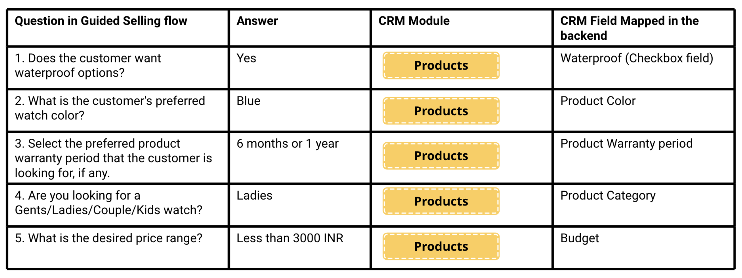 自社の腕時計に関して問い合わせをしてきた顧客に対して、営業担当者はさまざまな商品を紹介する必要があるかもしれません。時計の色や保証内容、メーカー、顧客の性別、その他多くの特徴など、顧客にとって適切な時計選びでは多くの要因に左右されます。このような場合、営業担当者にとって、無数の選択肢の中から顧客に最適な時計を選ぶのは大変な作業になります。ここで、「見積入力ガイド」機能が役に立ちます。