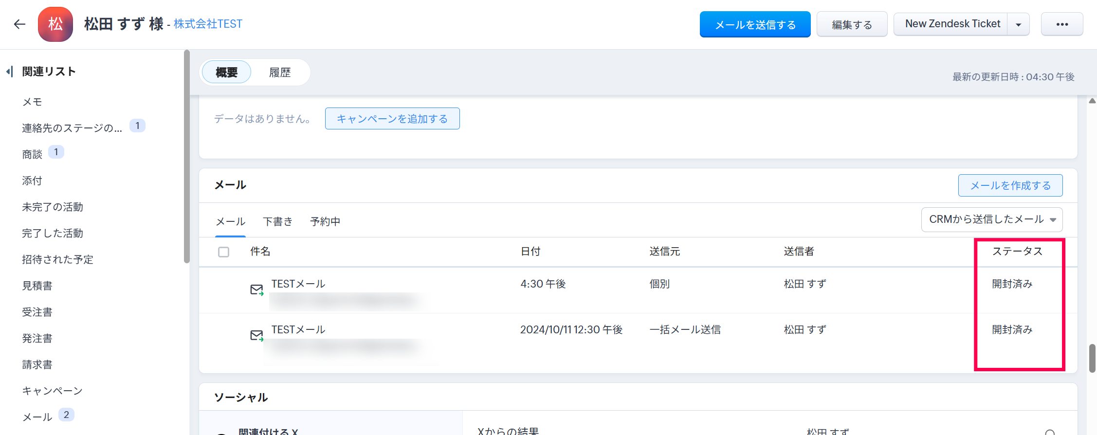【Zoho CRM】送信したメールの送信結果の確認方法