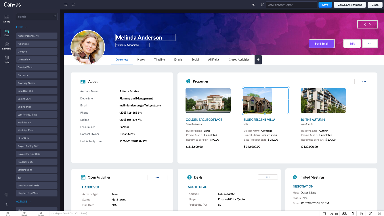 キャンバスは、デザイン機能であり、Zoho CRM のUIを再構築できます。