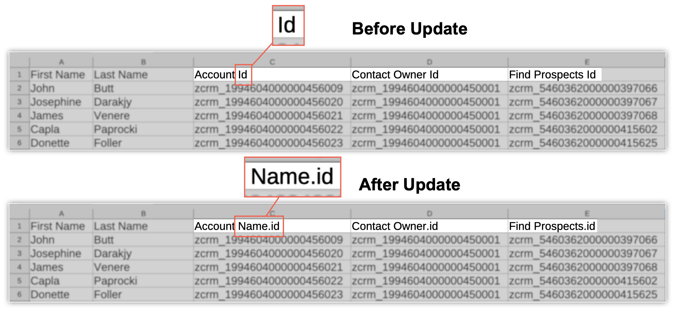 【Zoho CRM】バックアップデータに関するアップデートのお知らせ:ファイル内の表示項目列名に変更がありました。