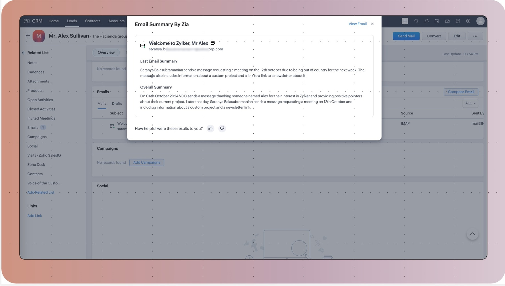 そのため、Zoho CRMでは、メールスレッドを要約する機能を提供しています。