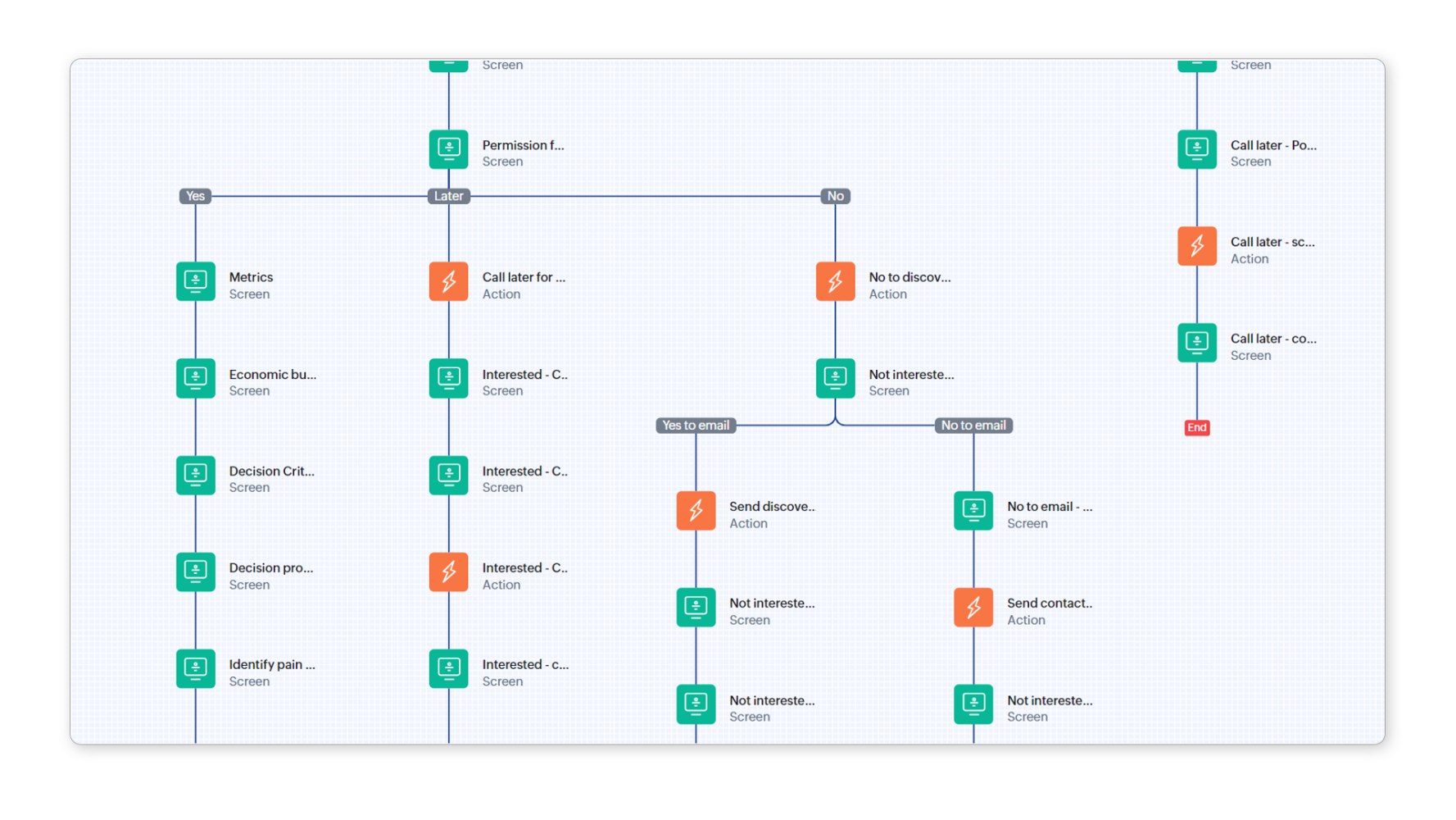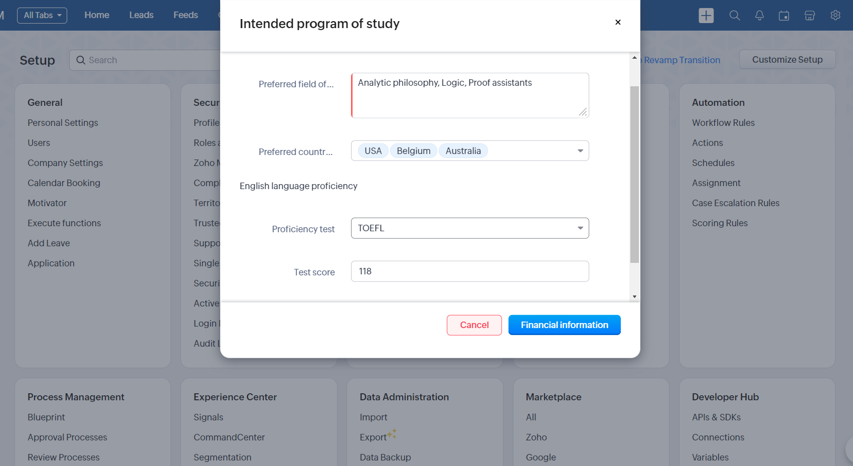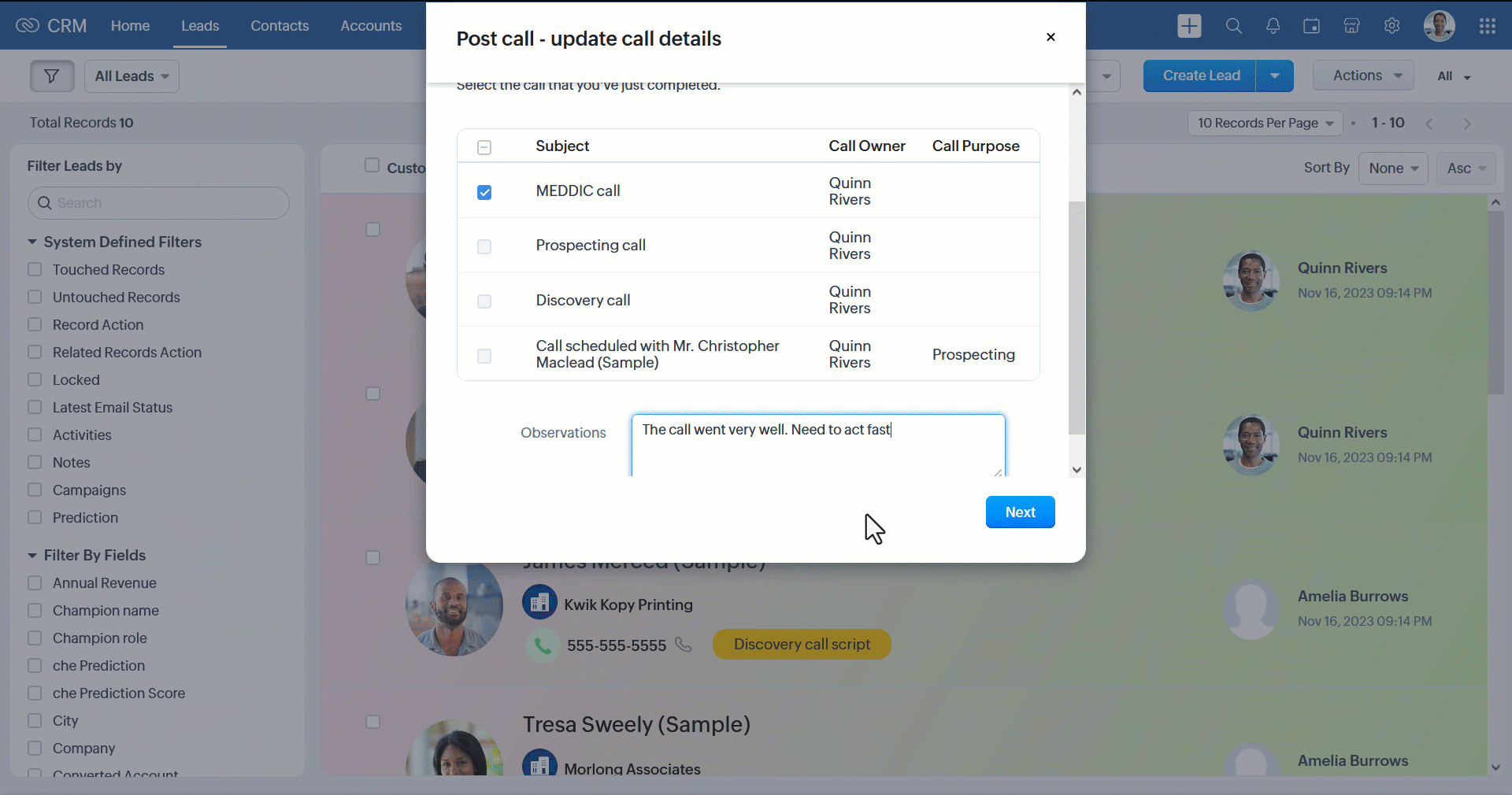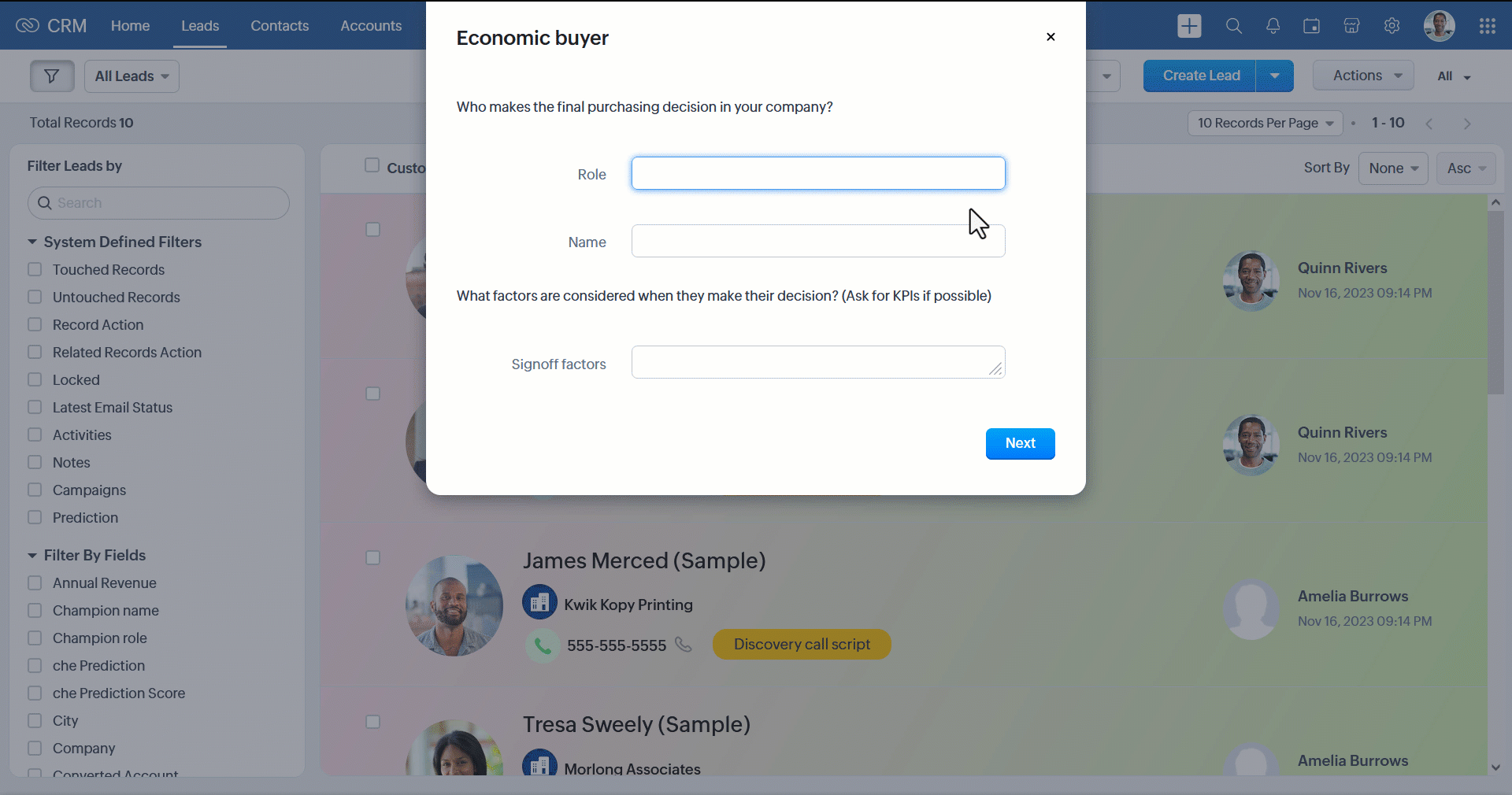 ユーザーが作業を行っている間、Zoho CRMでは収集したデータを使用して、複数タブでの項目の更新、新しいデータの作成、Web通知の送信、関数の実行などの処理を実行します。そのため、ユーザーは実際の作業フローに基づいて構築されたツールで快適に作業することができ、管理者や営業マネージャーは、作業フローの順守とCRMへの正確なデータ入力を保証することができます。