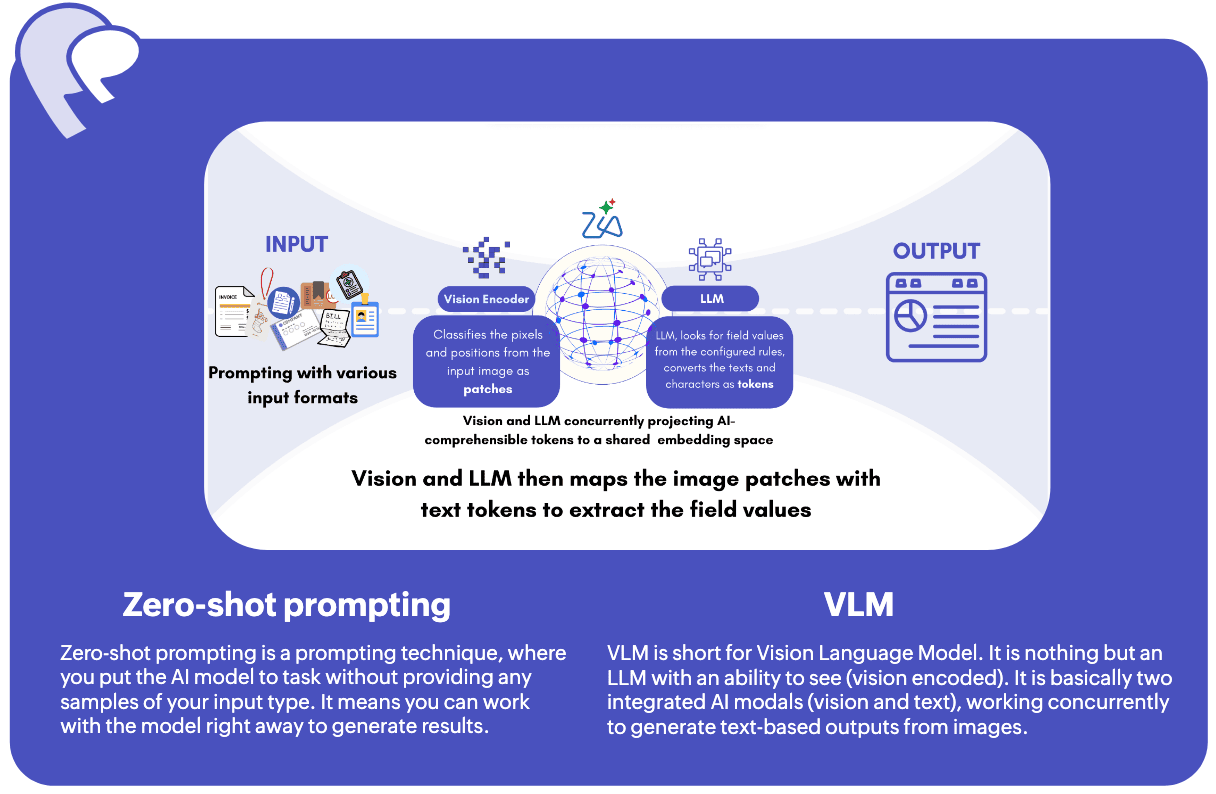 ICRの文脈において、VLMはICRルールに基づき入力ファイルから項目の値を識別し、それらを抽出するとともに、手動操作や指示なしにCRMのデータの形式に関連付けます。