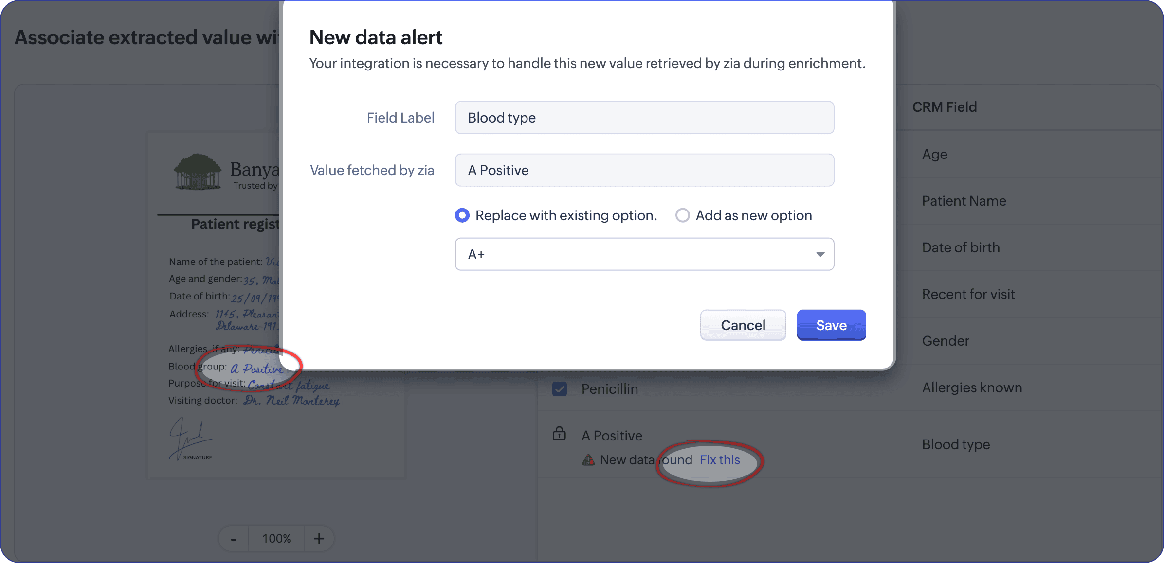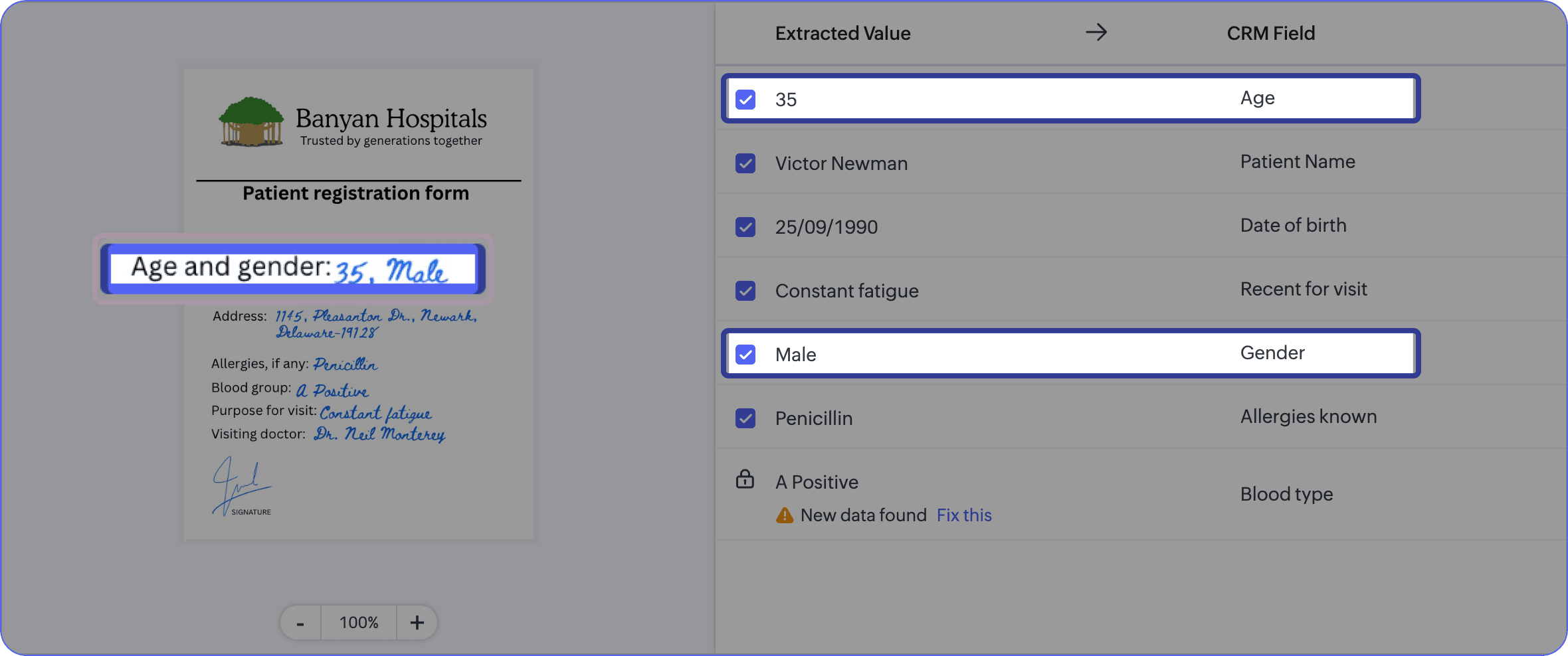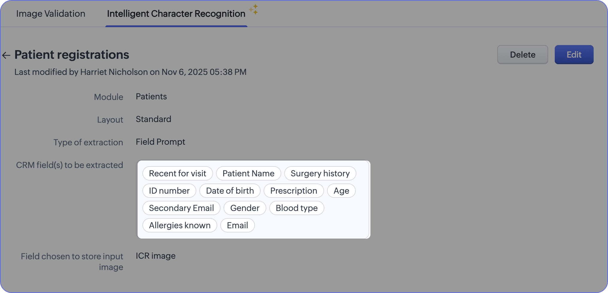 シナリオ:病院のフロントオフィス担当者は、ICR技術を用いて、紙ベースの手書き患者情報をCRMシステムに転送します。