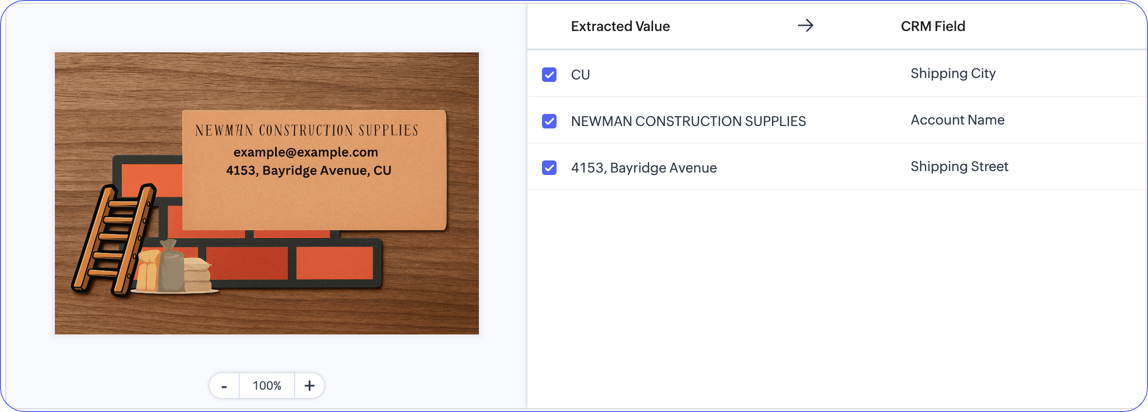 サンプル画像を用いてZiaをトレーニングすることで、標準的な印刷テキストから抽出されたデータを用いてCRMデータを作成・充実させることが可能です。
