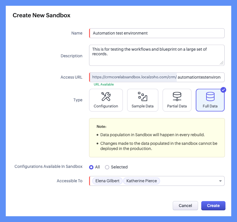 【Zoho CRM】全てのデータを取り込んでサンドボックスを作成できるようになりました。