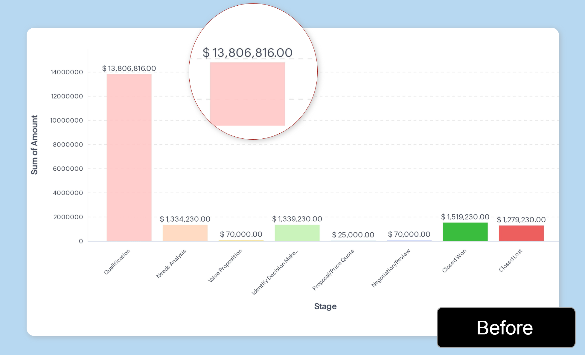 【Zoho CRM】アナリティクスタブにてデータを円グラフで表示した際、数値でカテゴリーを分けて表示したい