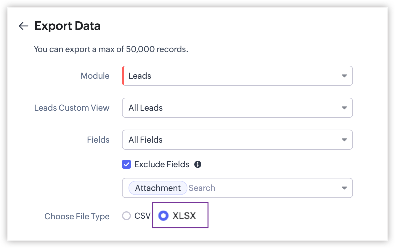 CRMデータのエクスポートに関する機能強化をいくつかご紹介します。XLSXファイル形式でのエクスポートが新たに追加されました。データ管理のエクスポート機能に新しいオプションが追加され、柔軟性が向上し、ユーザーがタブのデータをカスタマイズしてエクスポートできるようになりました。