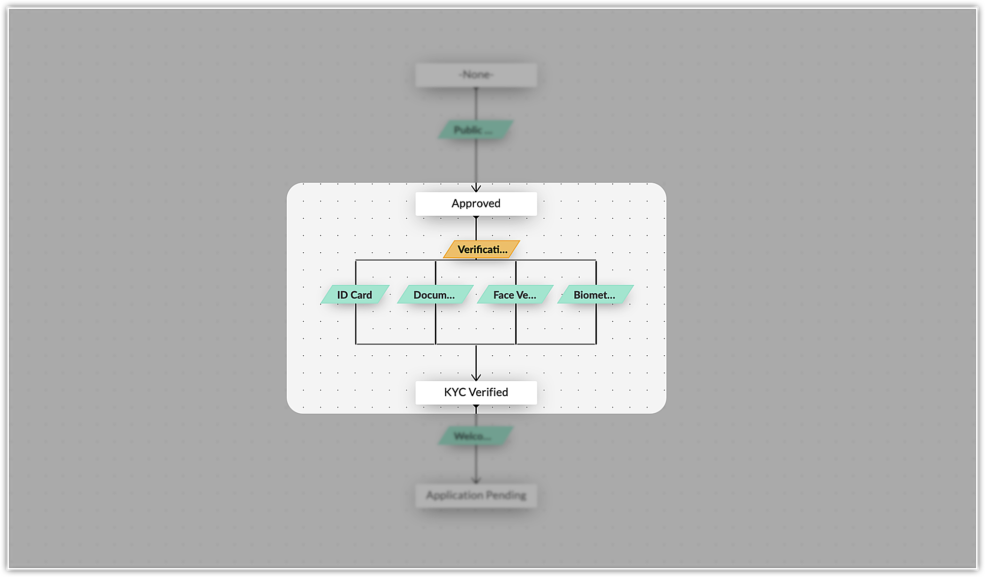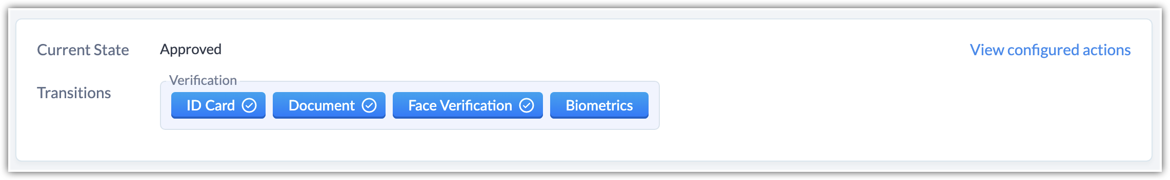 異なる遷移に異なるユーザーまたは役職を割り当て、各必要情報の確認を実行させることができます。すべての確認作業が完了すると、ブループリント機能によって、本人確認手続きは自動的に承認されます。