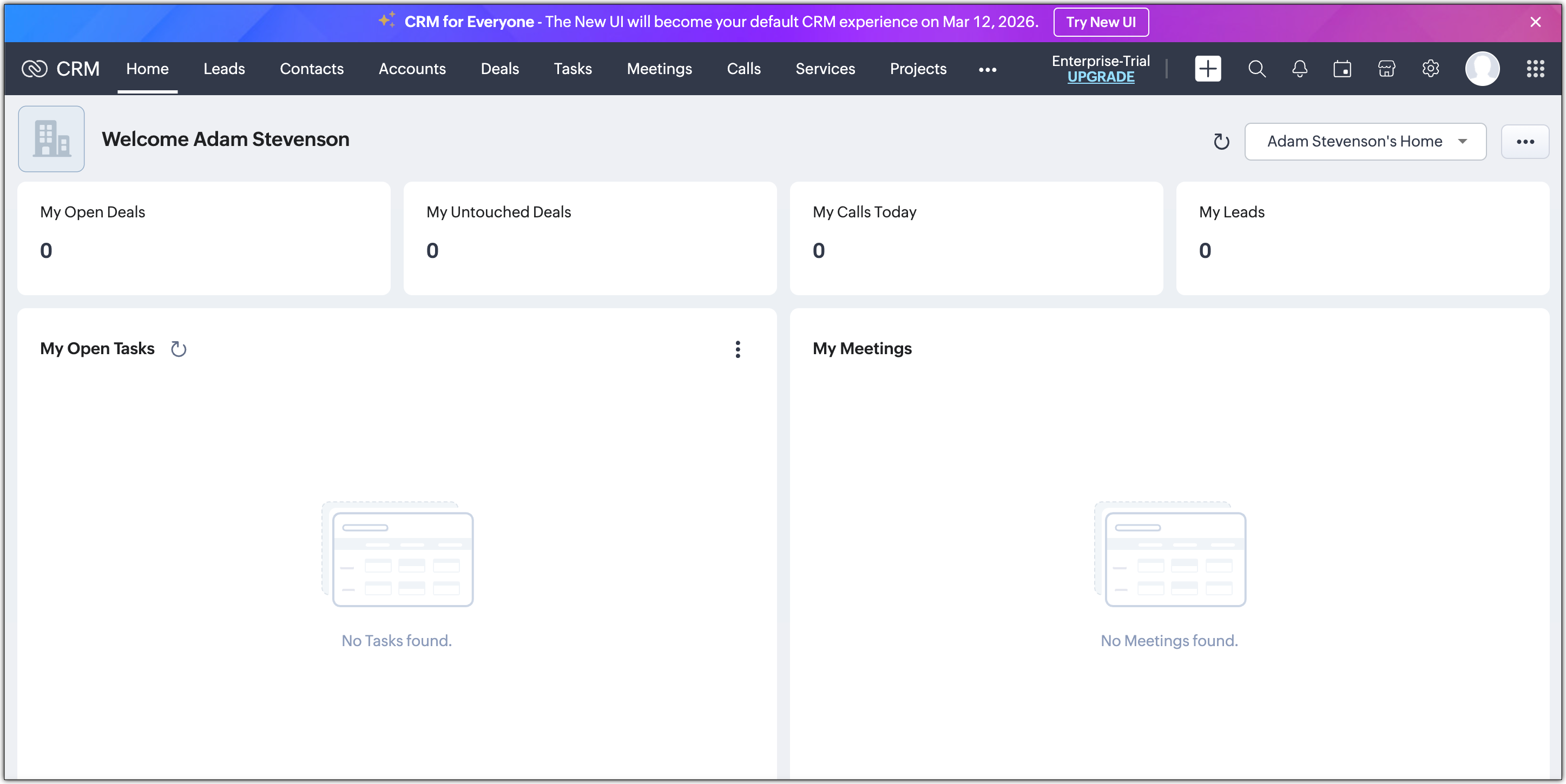 このバナーは、現在ユーザーが旧UIとZoho CRM for Everyoneのどちらを使用しているかに関係なく表示されます。