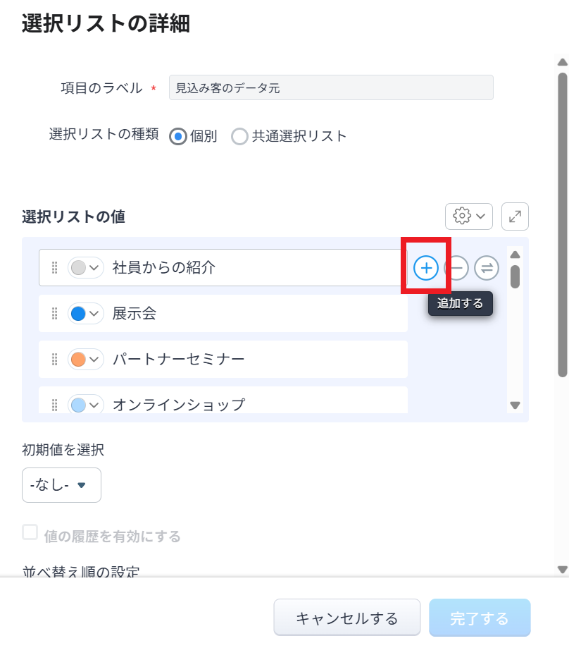 以下、「見込み客のデータ元」項目の選択肢を追加する手順をご紹介いたします。
