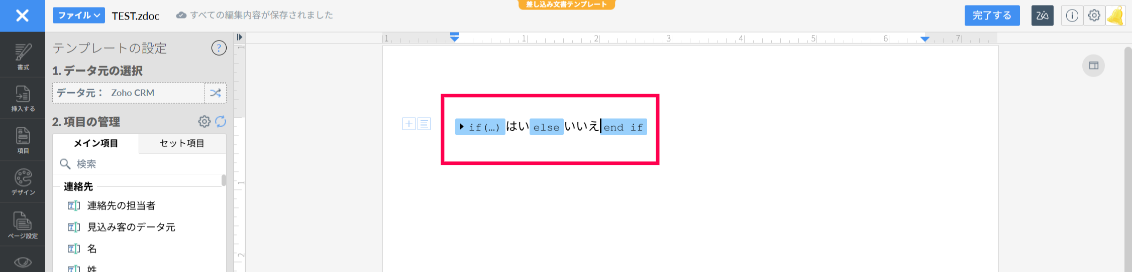 【Zoho CRM】差し込み文書にて、チェックボックス項目の値を「True/False」ではなく、任意の値で表示させたい