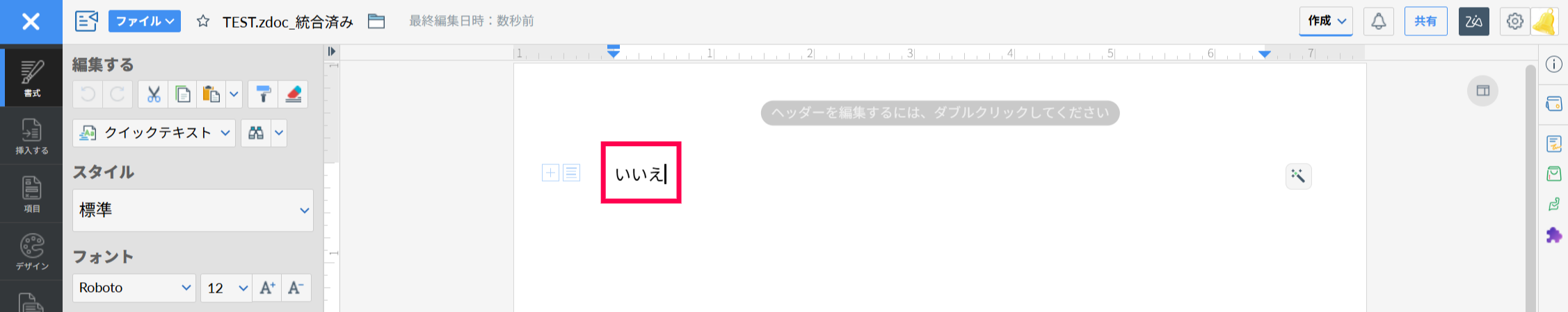一方、チェックボックス項目が無効(False)であるデータに対し、実際に上記の差し込み文書を作成した場合には、以下のように表示されます。