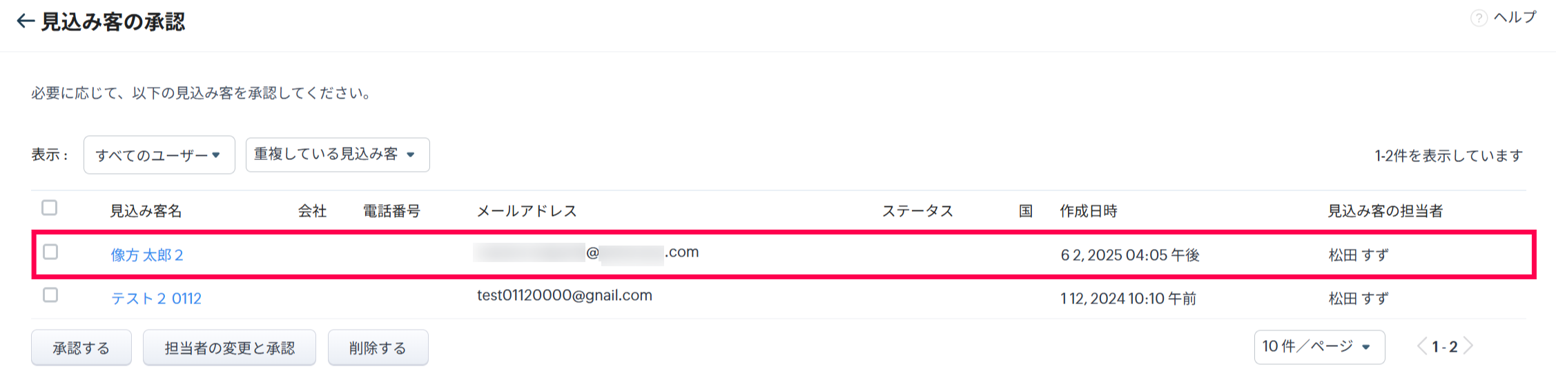 見込み客や連絡先データが重複し、見込み客や連絡先タブ内に表示されていない場合でも、