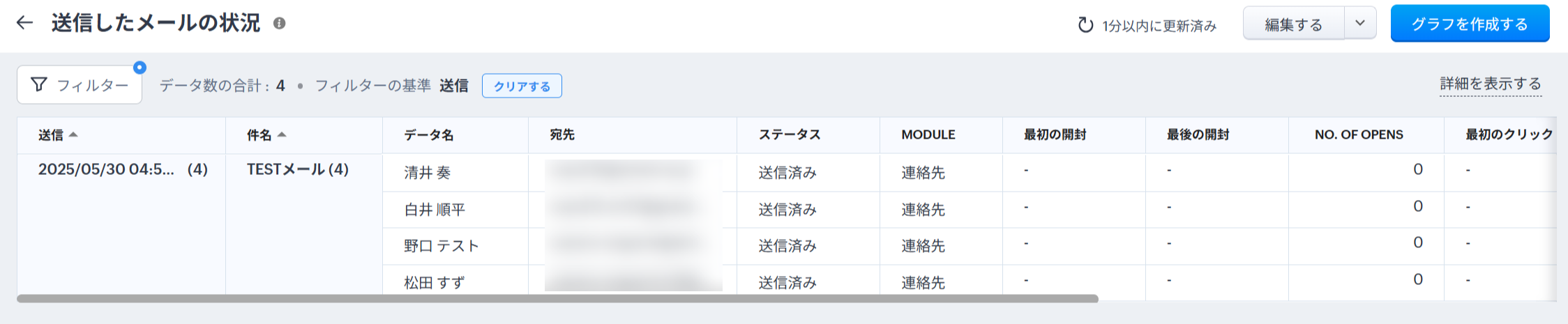 ・メールのレポート 例)デフォルトの「送信したメールの状況」レポート